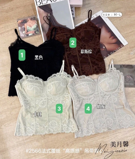 2512hc21 ÁO 2 DÂY REN NÂNG NGỰC Thiết kế corset ren sang trọng, ôm gọn vòng ngực tôn dáng nhẹ nhàng, mặc trong hay phối áo khoác đều đẹp. 4 màu đánh số ✅sz M-L M 42.5-52.5kg L 52.5-60kg 🌸 giá 80k 🐬 chốt 2512