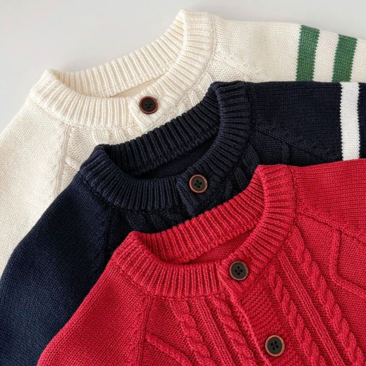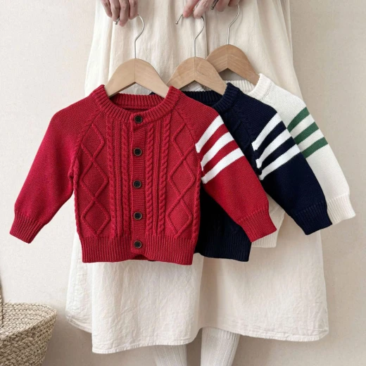 2312hc50 ÁO CARDIGAN LEN PHỐI SỌC TAY SZ NHÍ item “must-have” cho bé trai, mix dễ dàng, mặc thoải mái cả ngày. 3 màu be, đỏ, xanh ✅sz 66-100 66: 5-7kg 73: 7-9kg 80: 9-11kg 90: 11-13kg 100: 13-15kg 🌸 giá 192k 🐬 chốt 2312