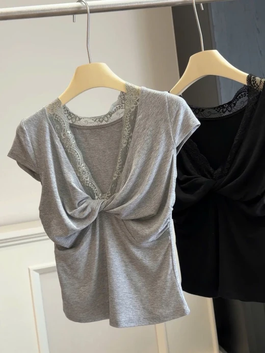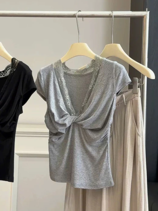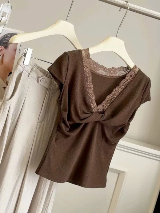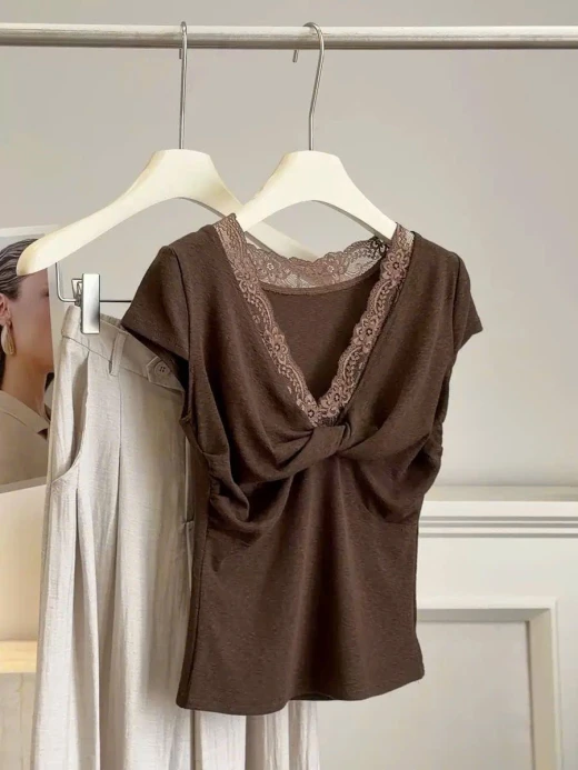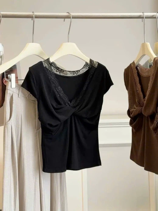 #2204gc43 🌈ÁO CỔ REN CHO NỮ ANNA ✨ Thiết kế xoắn ngực + phối ren – vừa nữ tính vừa trendy ✨ Form ôm nhẹ tôn dáng – nhìn gọn gàng, hack dáng xinh ✨ Chất vải mềm mịn, thoáng mát – mặc cực thoải mái mùa hè ✨ Style nhẹ nhàng pha chút quyến rũ – đi chơi hay đi cà phê đều hợp 💖 Mix với quần jeans hay chân váy đều xinh hết nấc ❗️3 màu : nâu - đen - xám ✅frsz 40-60kg ☘️Giá: 165k 🚛Hàng od chốt 22/4