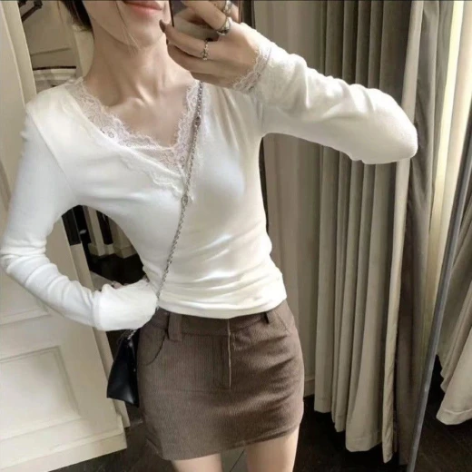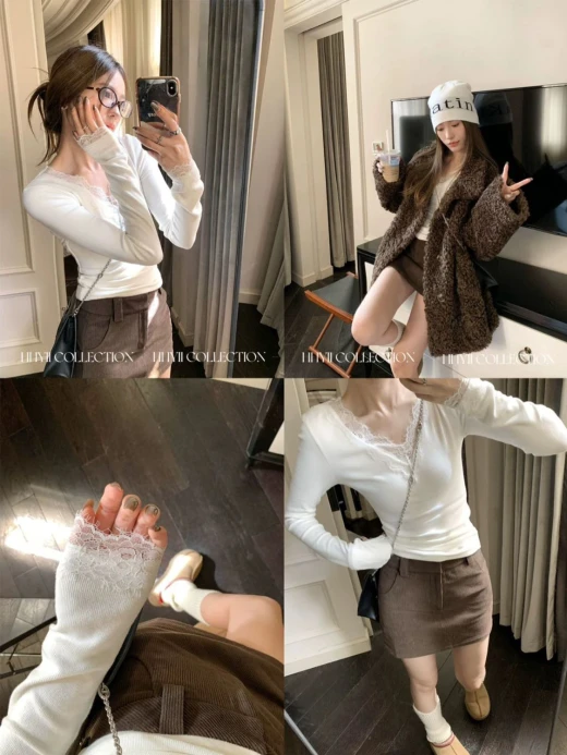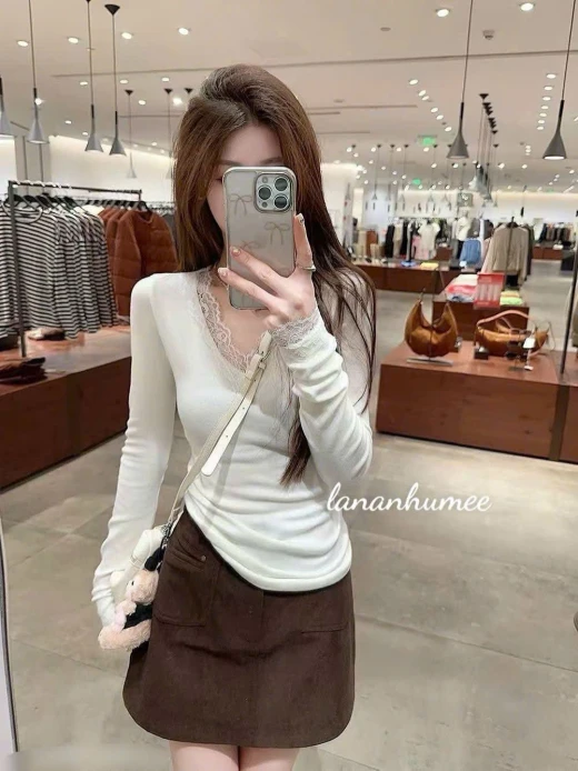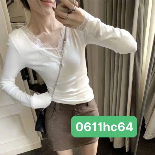 0611hc64 Lạnh lạnh như này làm em ÁO THUNNN XINH LẮM luônngggg ấy. ‼️ Only 2 áo chỉ #1xxkkkk/2 áo luôn. ‼️ ‼️ Áo cổ V Phối ren đang HOT TREND năm nay đoá ạ. ☑️2 màu : kem - đen ☑️ freesz dưới 60kg giá 59k/1c chốt 0611