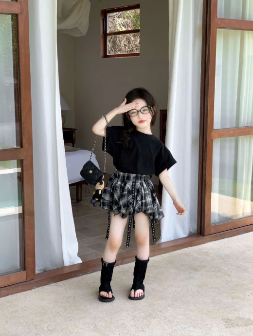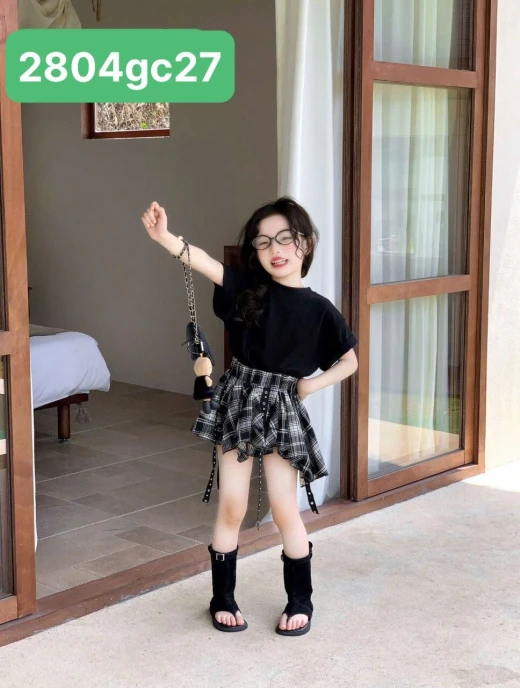 #2804gc27 ÁO ĐEN MIX CV CARO ✔Size : 90-140 🌸 giá áo giá 101k cv giá 158k 🐬 chốt 28/4