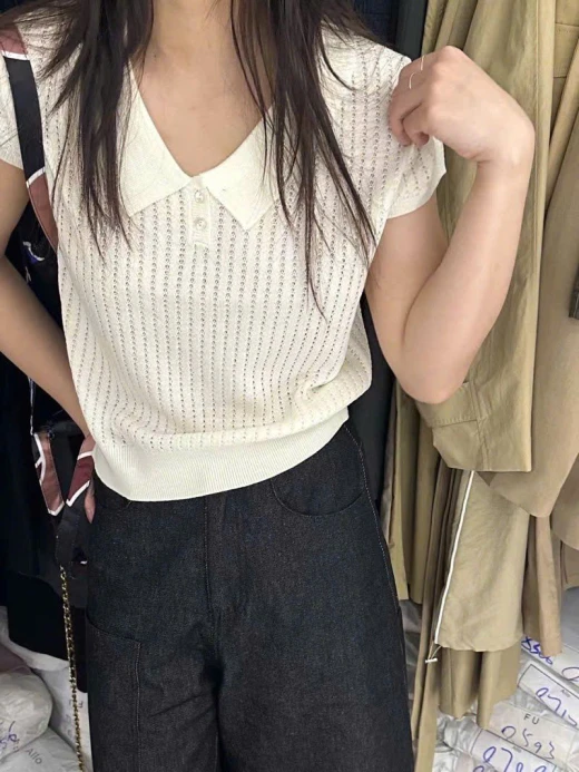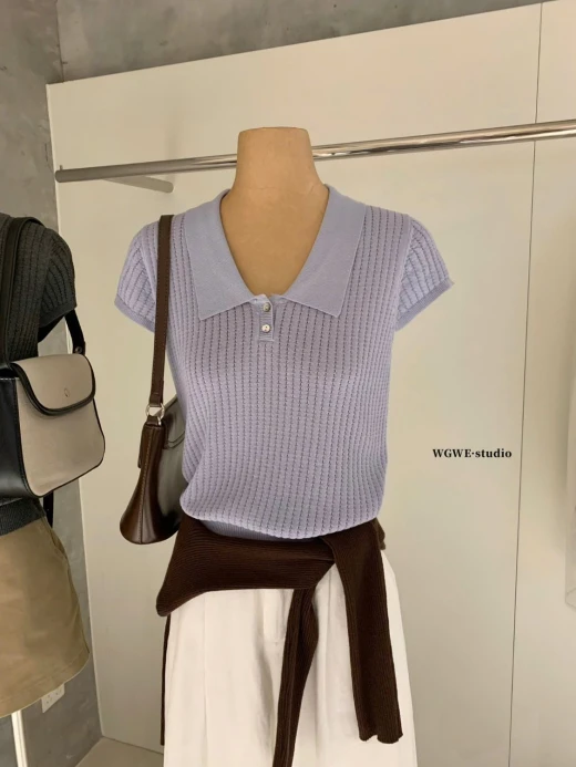 0203gc20 ÁO DỆT KIM CỔ POLO WGWE Mẫu mới lên kệ cho chị em thích đơn giản thanh lịch đây E vẫn gom WGWE zá tốt nhất lun. 4 màu: trắng - xanh- vàng - xám em đánh số Freesize <60kg Giá: 190k chốt 2/3