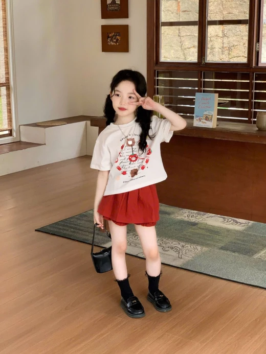 ÁO GẤU MIX QUẦN GIẢ VÁY ĐỎ