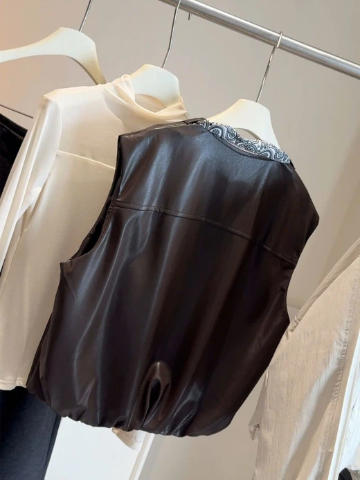 2010hc62 ÁO GILE DA ANNA Thiết kế gile da cá tính, trẻ trung – mix cực “đỉnh” với áo thun hoặc sơ mi trắng bên trong. Chất da mềm mịn, bóng nhẹ sang xịn mịn – mặc nhẹ vai, lên form chuẩn. 2 màu: đen, nâu ✅freesz dưới 65kg 🌸 giá 208k 🐬 chốt 20/10