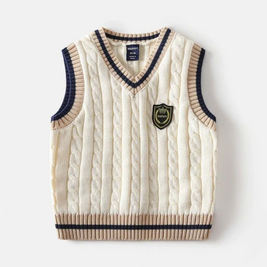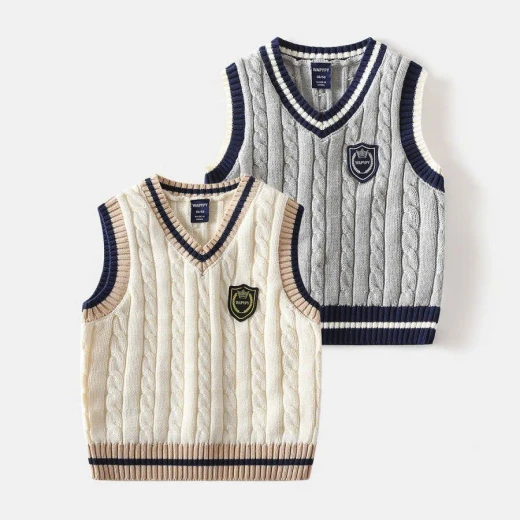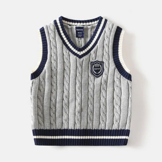 #0312hc56 ÁO GILE LEN HỌC SINH WAPPY 👍Phong cách hàn xẻng bé trai bé gái đều có thể đùng đc ạ! Kết hợp áo sơmi, áo phông đều rất okila luôn nha! Size 90-130 Màu : xám , kem 🌸 giá 146k 🐬 chốt 3/12