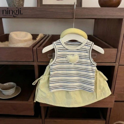 2103gc46 ÁO KẺ ĐÍNH TIM MIX CHÂN VÁY BG Mê cái tone vàng chanh này quá luôn, diện tôn da xinh xỉu Duy nhất 1 màu như hình #xxxk/set Sz: 80-140 Size tham khảo: 80: ~8-11kg 90: ~10–12kg 100: ~12–14kg 110: ~14–16kg 120: ~16–18kg 130: ~18–21kg 140: ~21–25kg giá: 166k `` chốt 2103