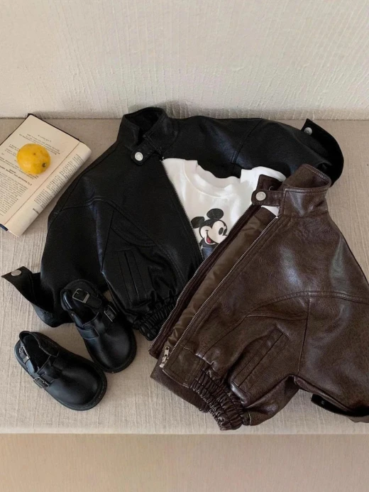 0301gc58 ÁO KHOÁC DA QCCC MIX QUẦN THÔ MUZI Áo khoác 2 màu: nâu- đen sz 90 100 110 120 130 140 150 #xxxk/ áo Quần thô muzi 2 màu: nâu - đất sét Sz 80 90 100 110 120 130 #xxxk/ quần (Hàng ghép set nên có thể áo hoặc quần về trước nhé các xốp) Giá : áo 385k, quần 181k Chốt 0301