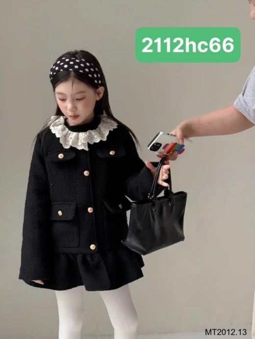 2112hc66 🌈Áo khoác đen cổ ren dáng váy cho bé gái Sz 100-160 💸 💸4xxxk/c giá: 340k chốt 2112