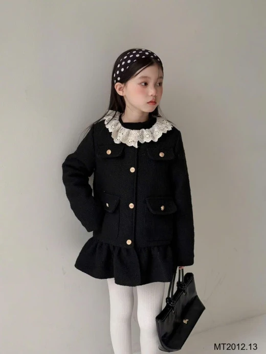 2112hc66-Áo khoác đen cổ ren dáng váy cho bé gái