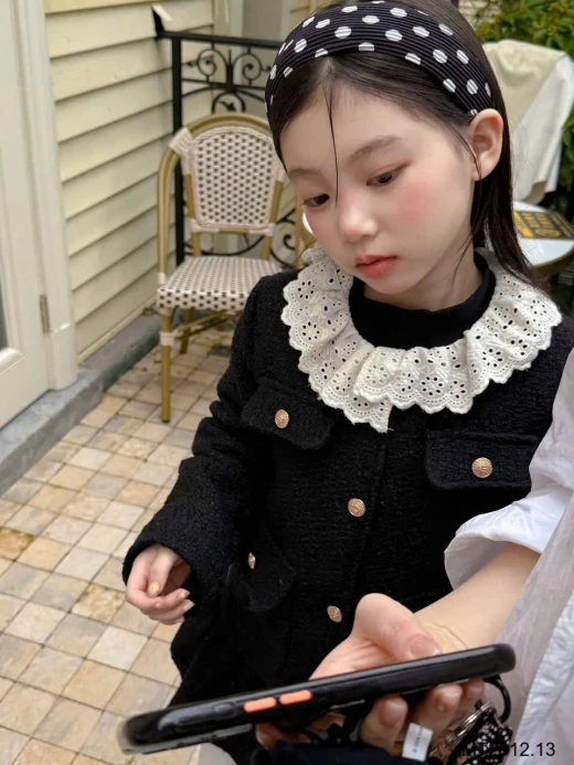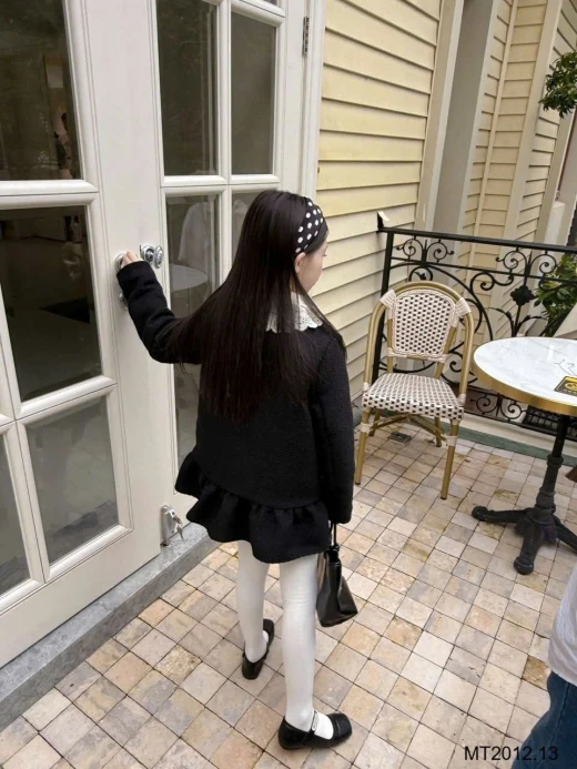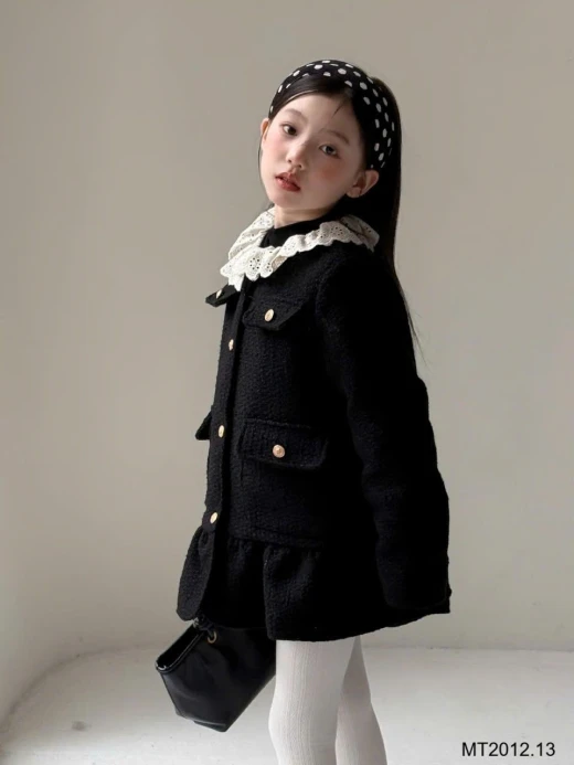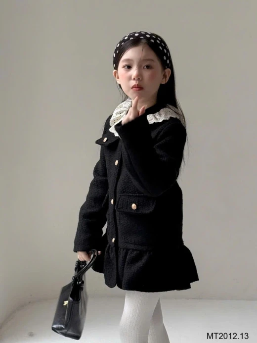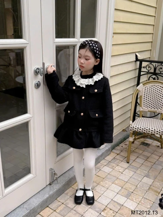Áo khoác đen cổ ren dáng váy cho bé gái