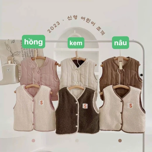 0212hc49 Style Hàn Quốc bé trai bé gái mặc đều okela ạ Only #139kkk Hồng / Kem / Nâu Em đã note rõ màu lên từng ảnh HÈ SĂN ĐỒ ĐÔNG THÌ GIÁ RẺ LẮM Ạ! ♻️♻️ ÁO KHOÁC GILE 2 MẶT CHO BÉ ♻️♻️ WEB SALE #139kkk ( giá gốc 2xx) ❣️mặc được 2 kiểu nữa, quá hời, dày dặn lắm ạ 🎀Bảng sz : 80: 9-11kg 90: 11-13kg 100: 13-15kg 110: 15-17kg 120: 17-20kg 130: 20-22kg Giá: 98k Chốt 0212