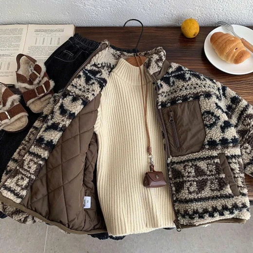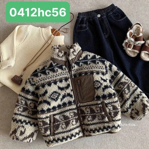 0412hc56 ÁO KHOÁC HỌA TIẾT MUYE #xxxk/c 1 em áo họa tiết phong cách hàn quốc, thiết kế trần bông ấm áp Sz: 90-150 giá 278k chốt 0412