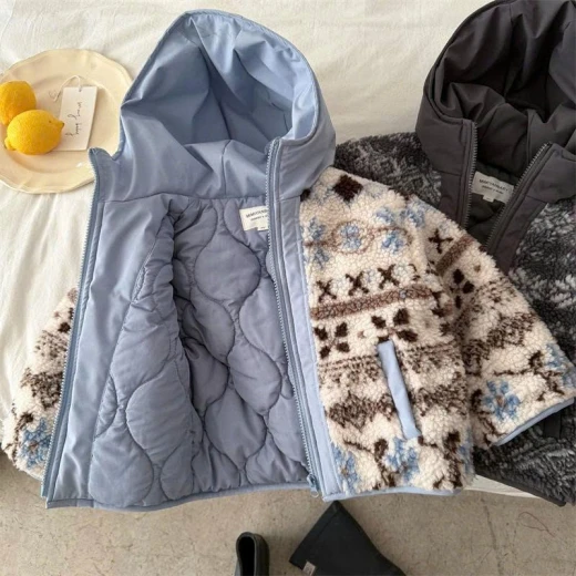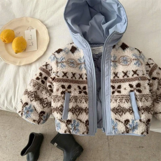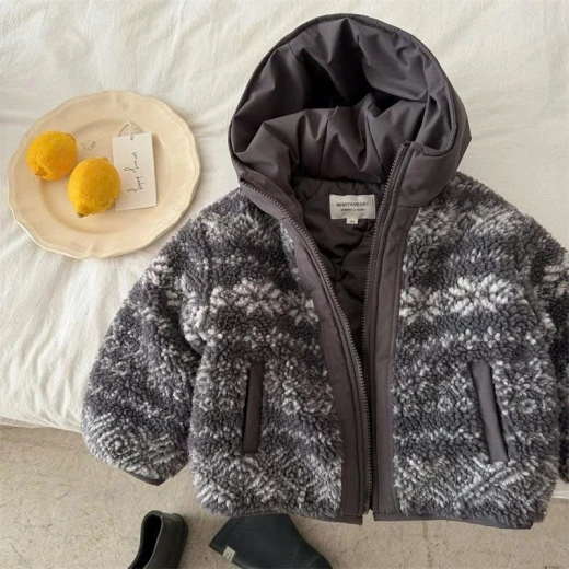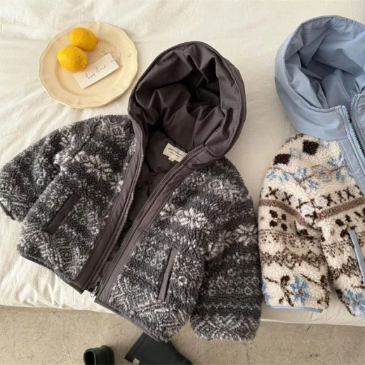 1112hc68 ÁO KHOÁC LIỀN MŨ LÔNG CỪU JACQUARD #xxxk/c , từ 2c còn xxkx Bao năm em vẫn mê mmy đẹp từ chất liệu đến hình thức luôn 👉 2 màu : xanh - xám ✅ Sz; 90-150 Giá: 253k Chốt 11/12