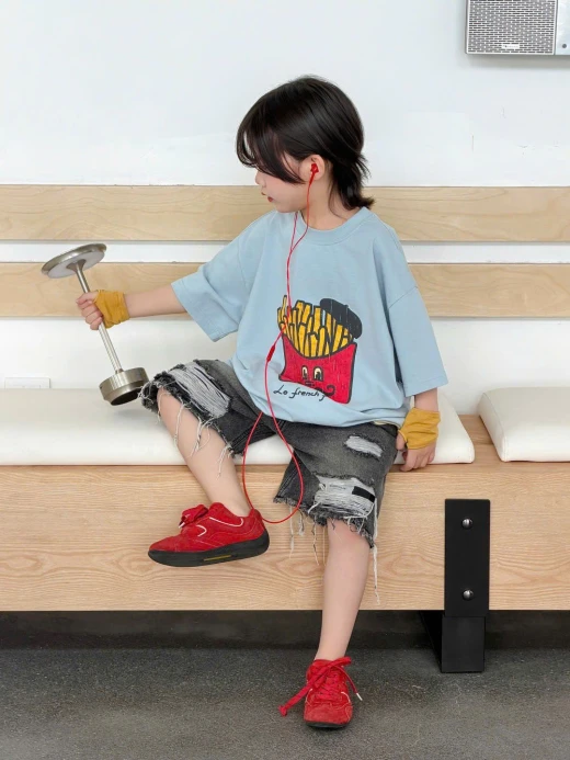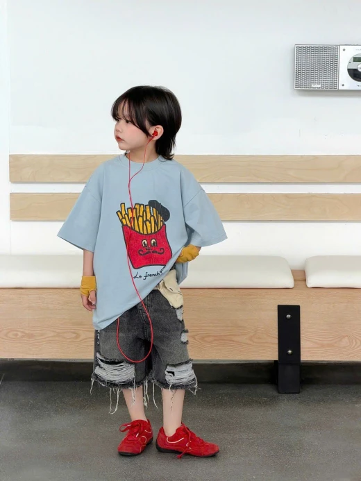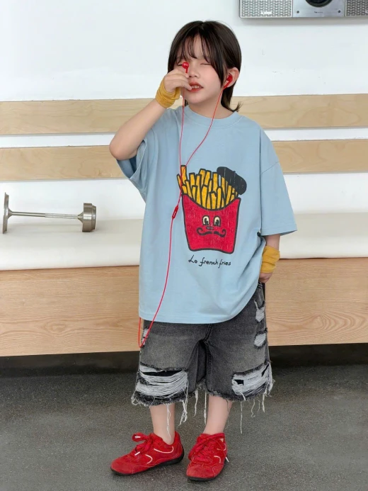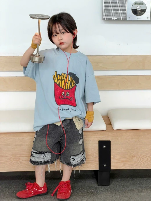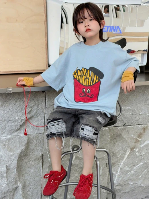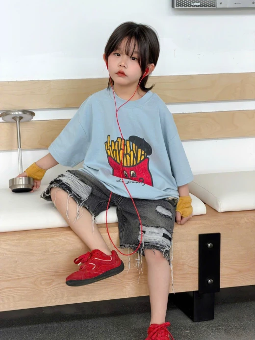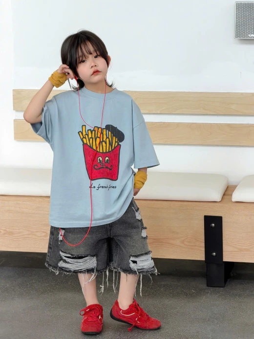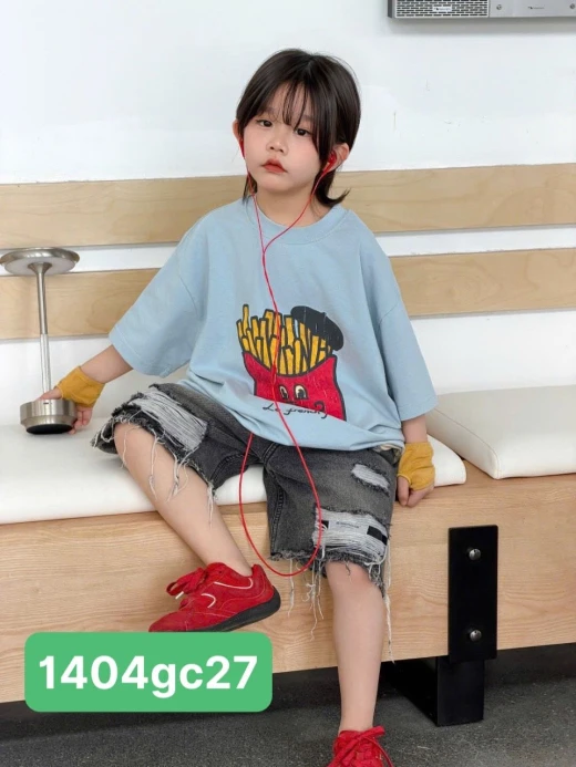 1404gc27 ÁO KHOAI TÂY MIX SHORT JEANS RÁCH ✔Size : 100-150 🌸 giá áo giá 137k quần giá 178k 🐬 chốt 14/4