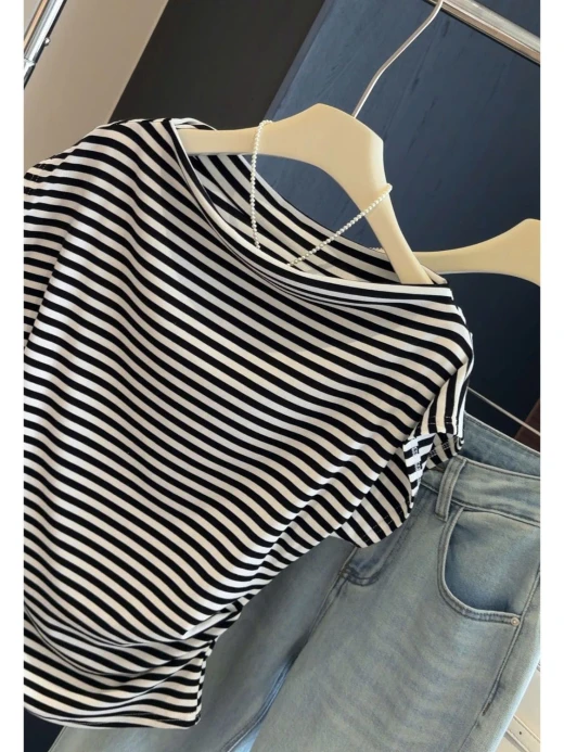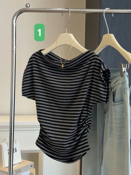 3103gc42 ÁO KIỂU TRỄ VAI SỌC ANNA Vừa nữ tính vừa khoe vai gọn gàng, giúp outfit trông trẻ trung và trendy hơn.  Mặc lên là auto trẻ ra vài tuổi luôn nha ✔ Thiết kế trễ vai gợi cảm nhẹ nhàng ✔ Form ôm nhẹ tôn eo – hack dáng cực đỉnh ✔ Sọc basic dễ phối quần jean, chân váy, short Đi cà phê, dạo phố hay chụp ảnh sống ảo đều xinh xỉu 2 mẫu đánh số ✅freesz 40-65kg 🌸 giá 130k 🐬 chốt 31/3