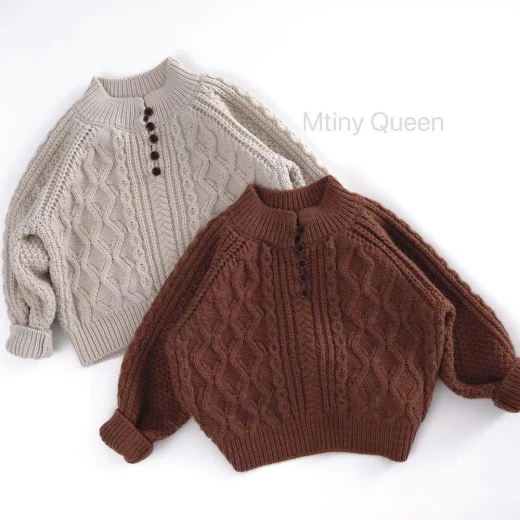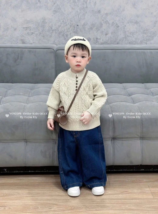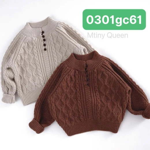 0301gc61 ÁO LEN CỔ KHUY CHO BÉ 2 màu: Nâu - Kem sz: 80-130 Giá: 203k chốt 0301