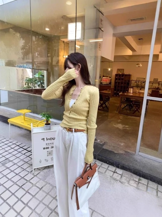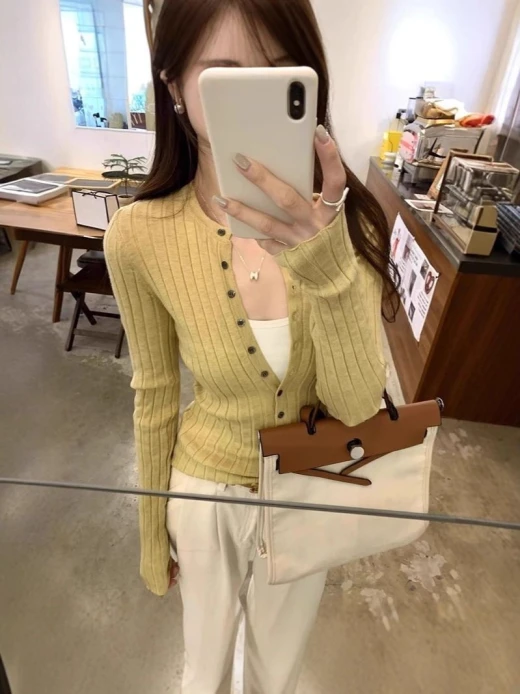 0610hc59 ‼️ ÁO LEN DỆT KIM DÁNG ÔM CHO NỮ #1xxkkk -Áo Len Dệt Kim nữ Dáng Ôm Vừa Người Phối Cúc Ngực Phong Cách Hàn Quốc siêu sịn cho chị e mình đây ạ -lên dáng đẹp lắm nha ✅ Size : freesz dưới 59kg ✅ Có 6 màu như hình: ==== chốt 6/10 giá 109k/1c