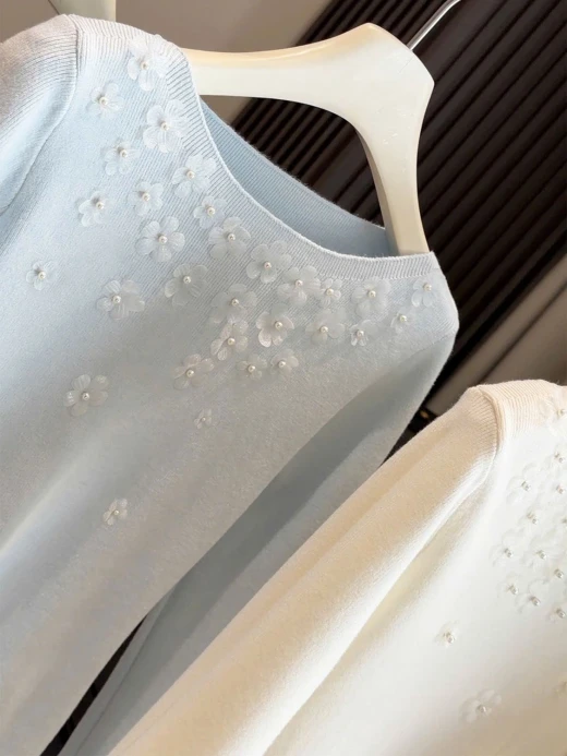 0101gc09 ÁO LEN HOA ĐÍNH HẠT CAO CẤP ANNA Chất len mịn, mềm, mặc êm da, không ngứa. Thiết kế hoa đính hạt nổi tinh tế, nhìn rất sang ✅️ Màu: hồng, be, xanh ✅️ Freesize đến 60kg 🌸 giá 177k 🐬 chốt 0101