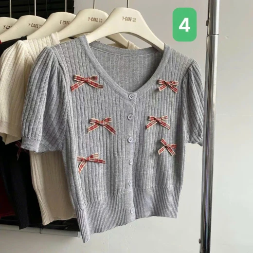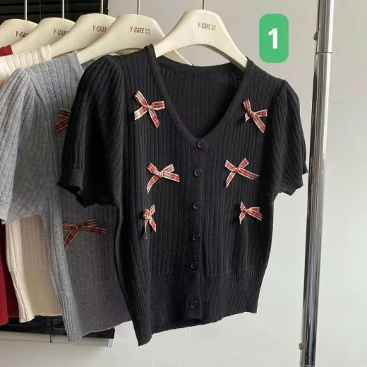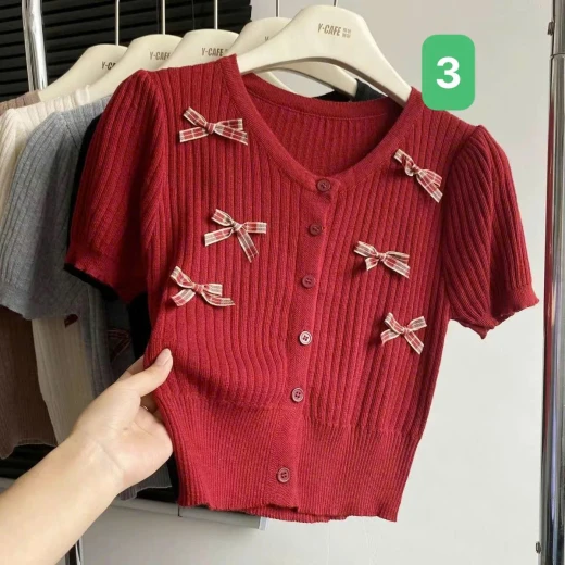 2312hc55 ÁO LEN NGẮN TAY PHỐI NƠ Ngọt ngào chuẩn tiểu thư Pháp Chất len mịn mát, dáng ôm nhẹ tôn eo – mặc lên là xinh ngay Thiết kế nơ nổi bật, vừa nữ tính vừa sang chảnh, diện đi chơi hay đi làm đều hợp 4 mẫu đánh số ✅frsz dưới 60kg 🌸 giá 95k 🐬 chốt 2312
