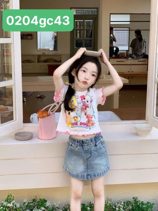 #0204gc43 ÁO MÈO MIX CV JEANS ✔Size : 90-140 🌸 giá áo 139k cv 153k 🐬 chốt 2/4
