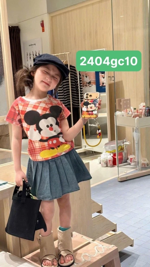 2404gc10 ÁO MICKEY MIX CV JEANS XẾP LY ✔Size : 90-150 🌸 giá áo giá 129k cv giá 170k 🐬 chốt 24/4