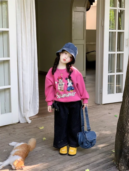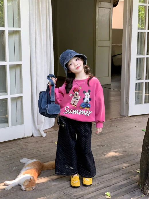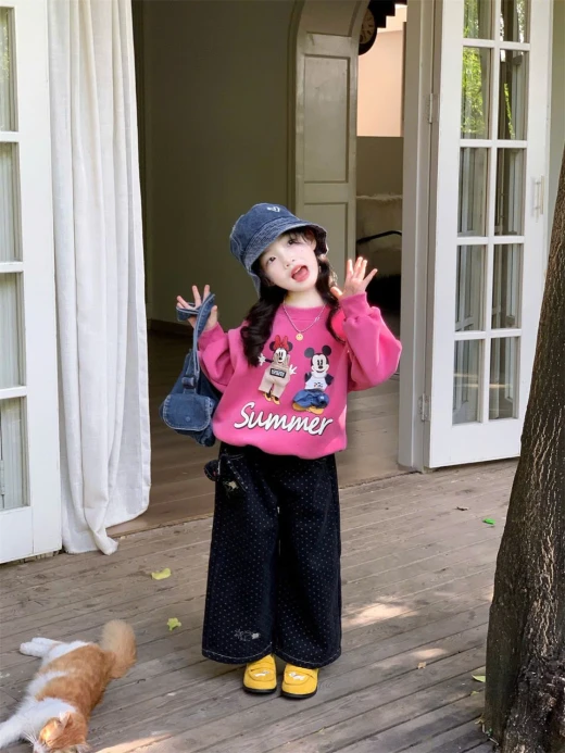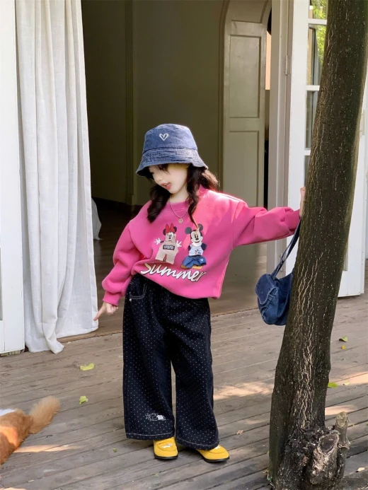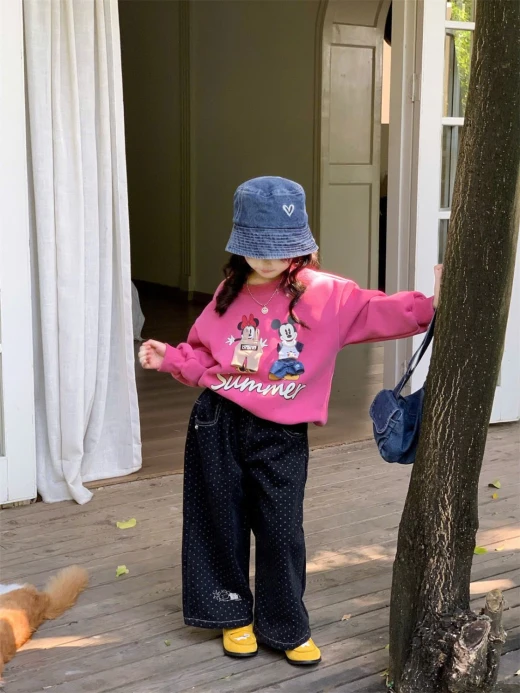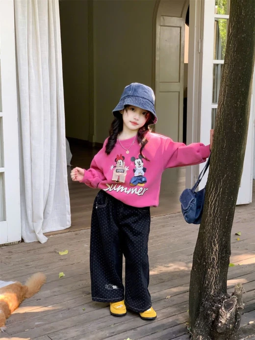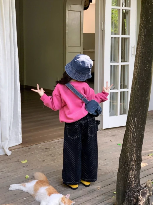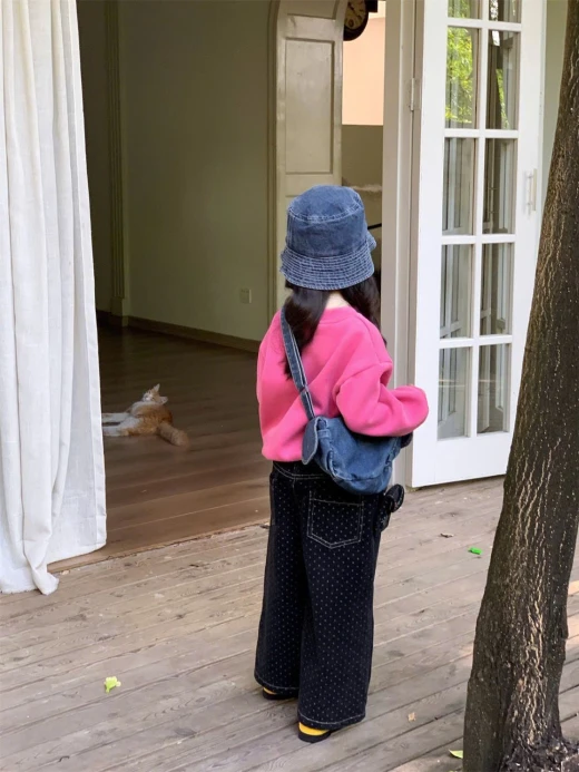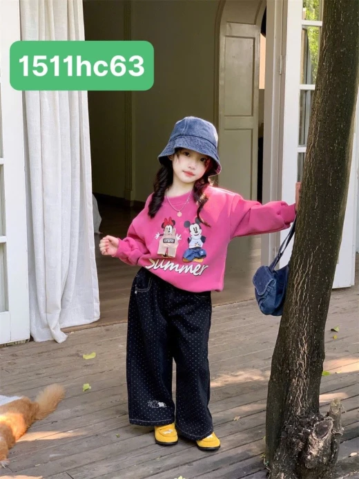 ÁO NỈ HỒNG MIX JEANS SUÔNG CHẤM BI