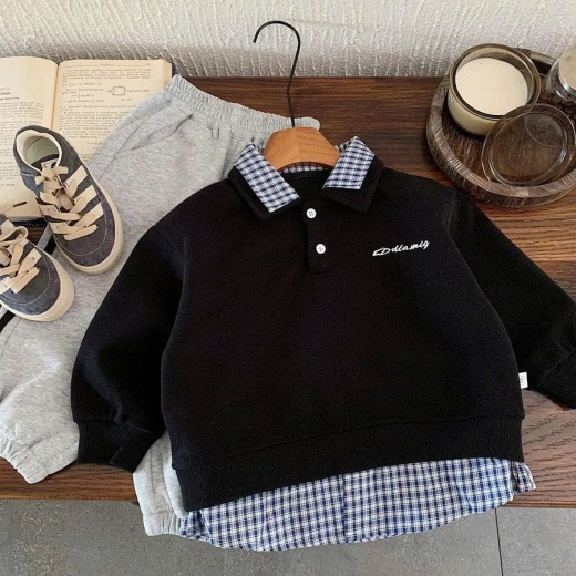 2609hc57 👕 Áo nỉ phối sơ mi kẻ caro – hot trend cho bé diện thu đông này! ✨ Thiết kế 2 trong 1: vừa năng động, vừa thanh lịch 🌈 Có 2 màu basic: xám trắng & đen dễ phối đồ 🧸 Chất nỉ mềm mịn, giữ ấm nhưng vẫn thoải mái cho bé vận động 📏 SizeL 90-140 Giá: 148k chốt 2609