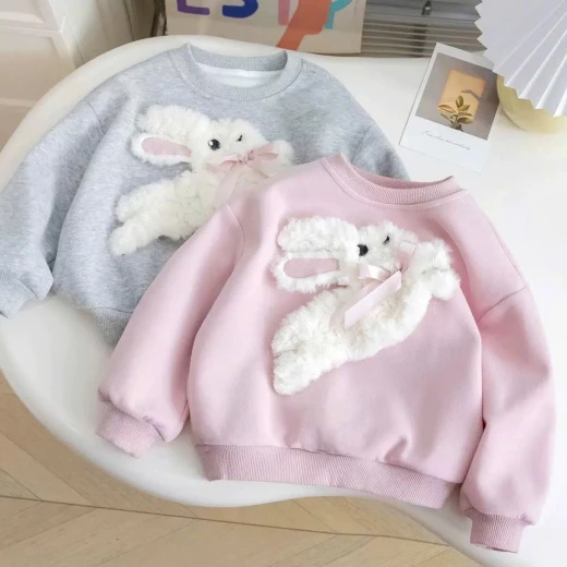 0201gc66 ♥️♥️ÁO NỈ THỎ LÔNG BÉ GÁI SIÊU XINH LUÔN Ạ Về tay #xxk/c 💫xinh mà rẻ quá này các mom ✔️2 màu : hồng - xám ✔️ Sz 90-140 Bảng sz tham khảo 90: 11-13kg 100: 13-16kg 110: 16-18kg 120: 19-21kg 130: 21-24kg 140: 24-27kg giá 70k/c chốt 0201