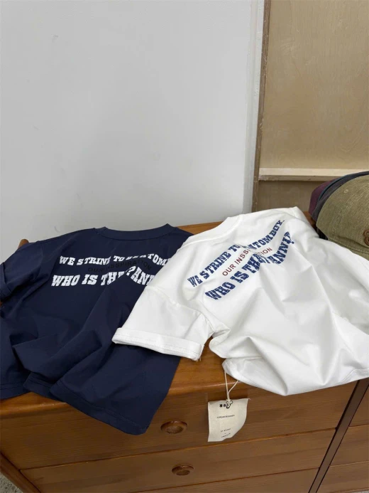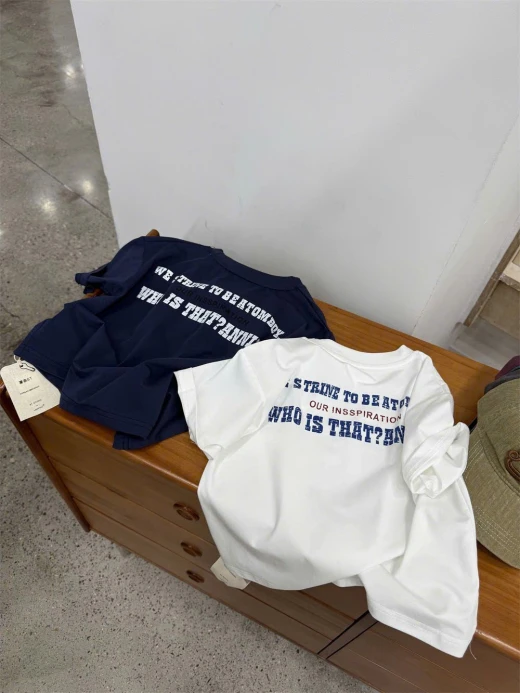#0603gc25 ÁO PHÔNG CHỮ CỘC TAY BT Hàng nhà này về đẹp lắm nha ce Cứ về lô áo phông nào là hết lô đấy nay em lại về lô mới phục vụ các bé đây ạ 2 màu: trắng, xanh sz 100-150 🌸 giá 114k 🐬 chốt 6/3