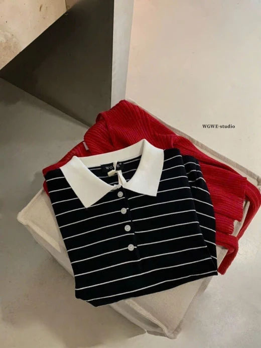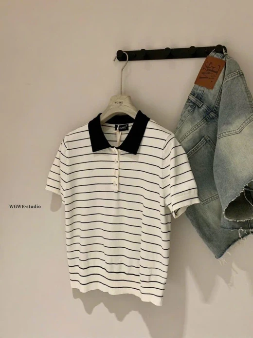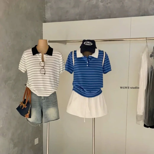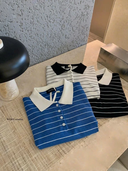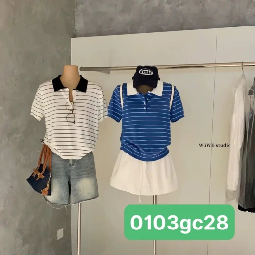 0103gc28 ÁO POLO KẺ NGANG WGWE 🍑 Màu lên siêu xinh, mặc cực tôn da luôn ạ 🍓 Có 3 màu đánh số ✅ Freesize 🌸 giá 170k 🐬 chốt 1/3