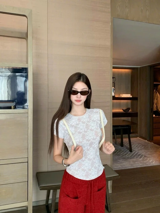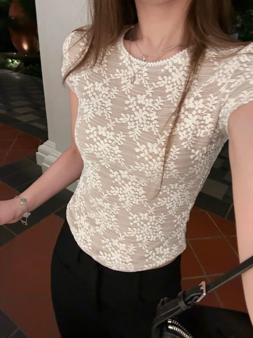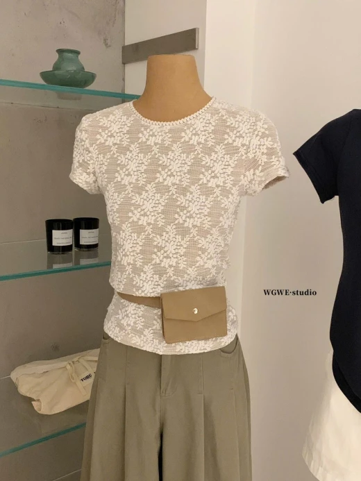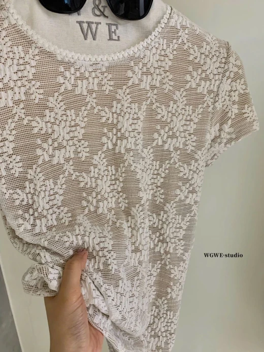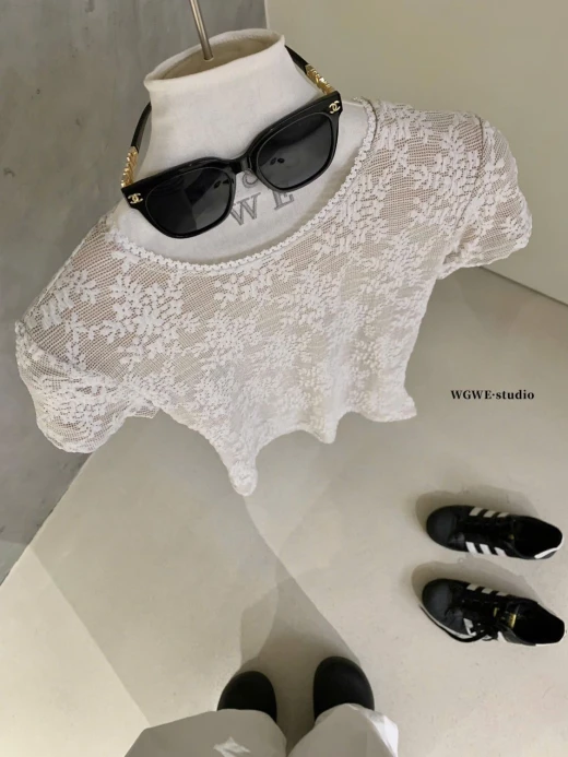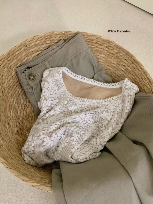 #2804gc29 ÁO REN HOA CỔ TRÒN WGWE 9273 Thiết kế ren hoa tinh tế,nhẹ nhàng – phù hợp cả đi làm lẫn đi chơi, phối váy hay quần đều chuẩn xinh. sz SM 🌸 giá 141k 🐬 chốt 28/4