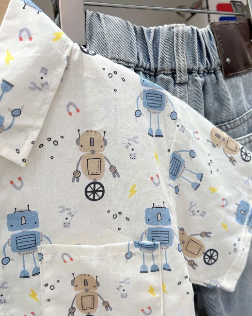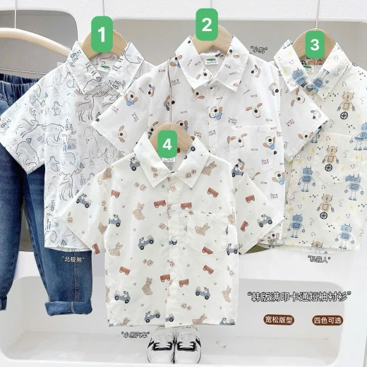 2502gc27 ÁO SƠ MI IN HÌNH KACADY ✔4 mẫu đánh số ✔Size : 100-150 🌸 giá 102k 🐬 chốt 25/2