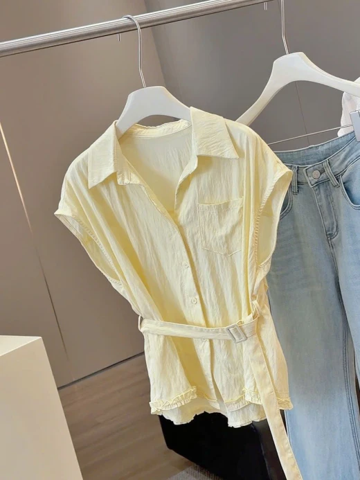 1604gc02 ÁO SƠ MI TAY HẾN ANNA Áo đẹp tôn dáng cho ce nè, mix quần hay áo nhìn cũng thanh lịch cực kì 3 màu: trắng, vàng, xanh freesize 🌸 giá 173k 🐬 chốt 16/4