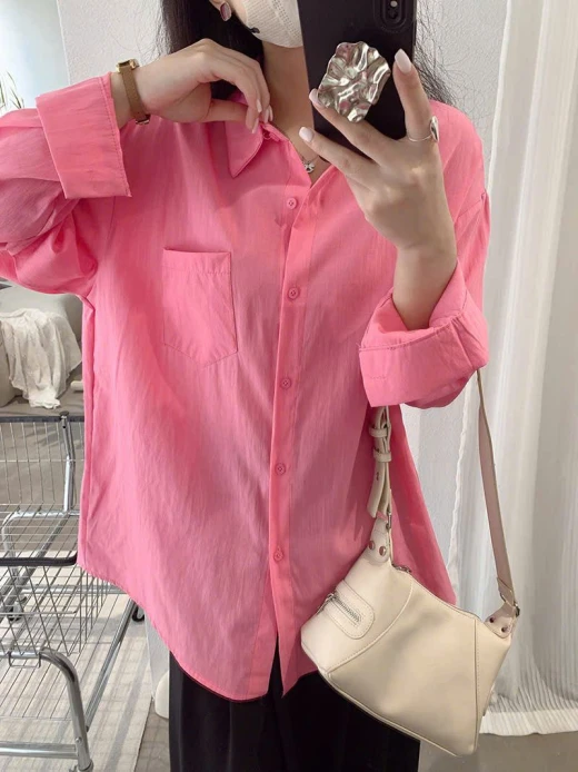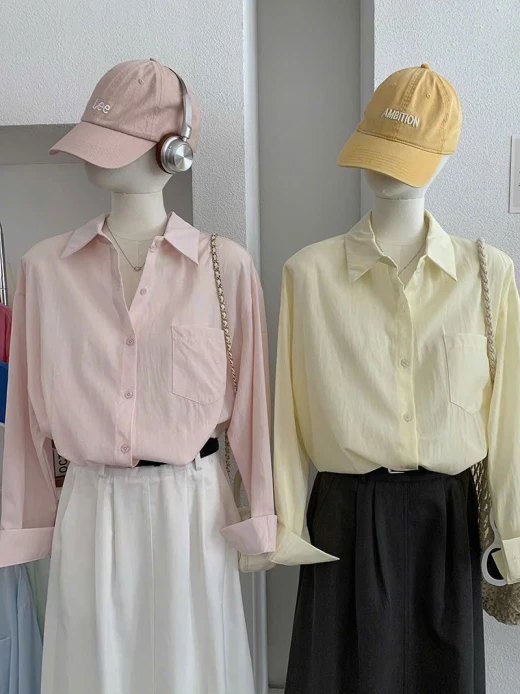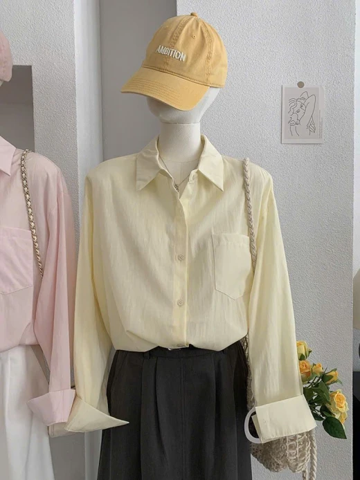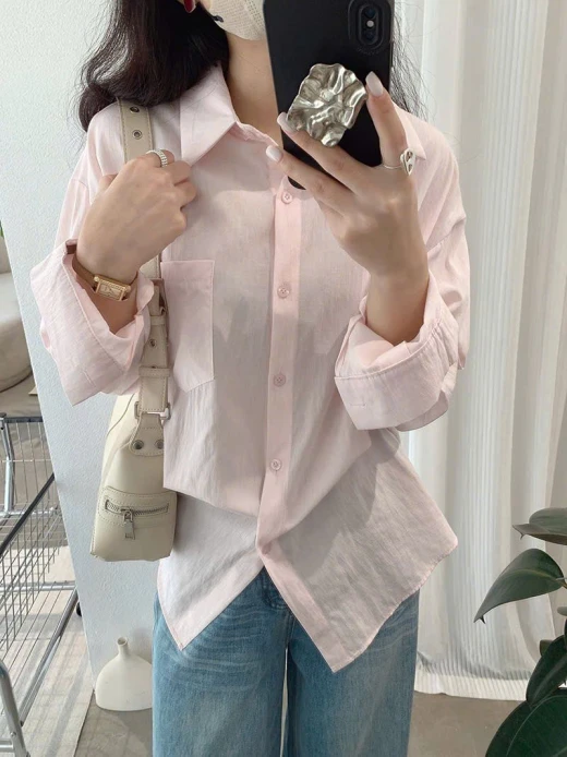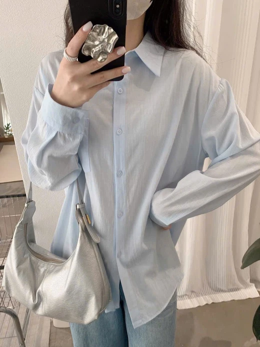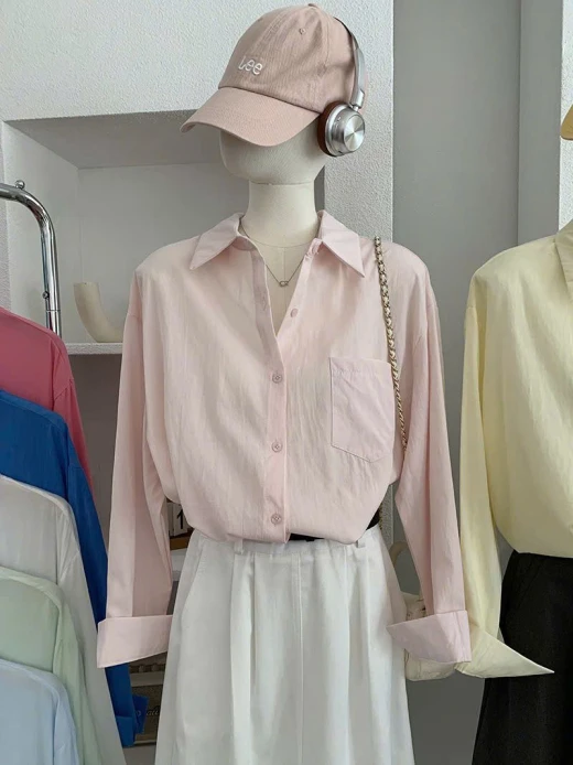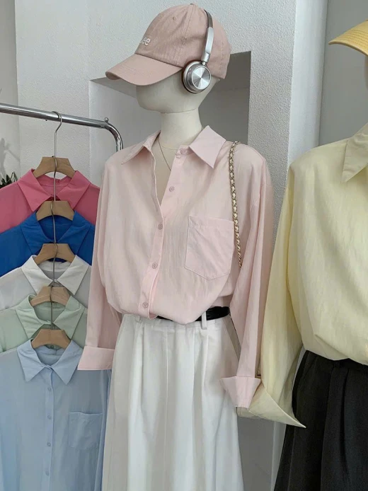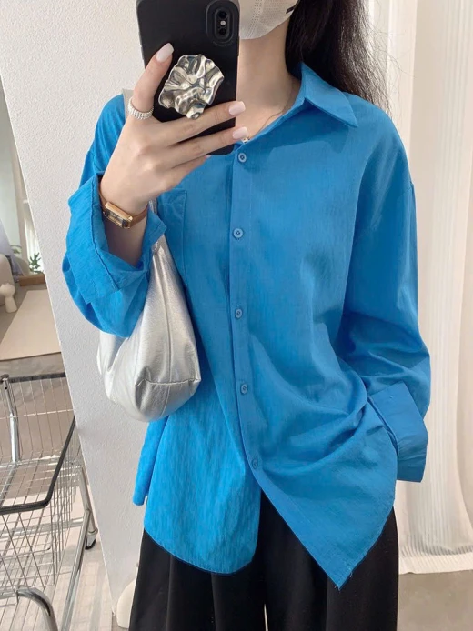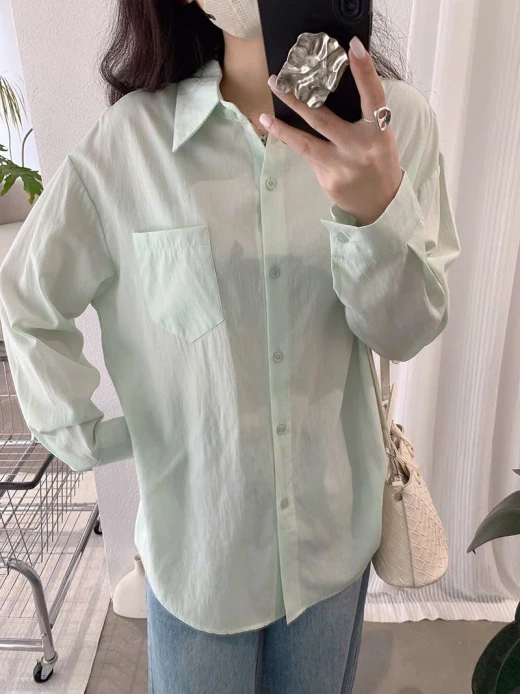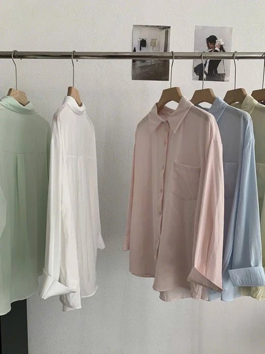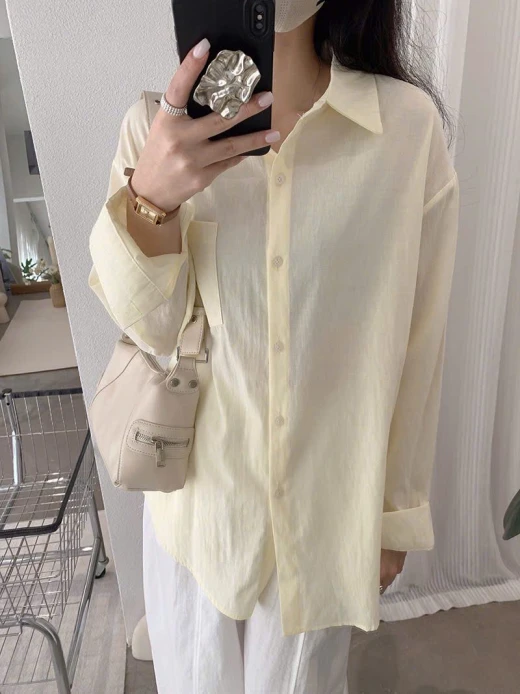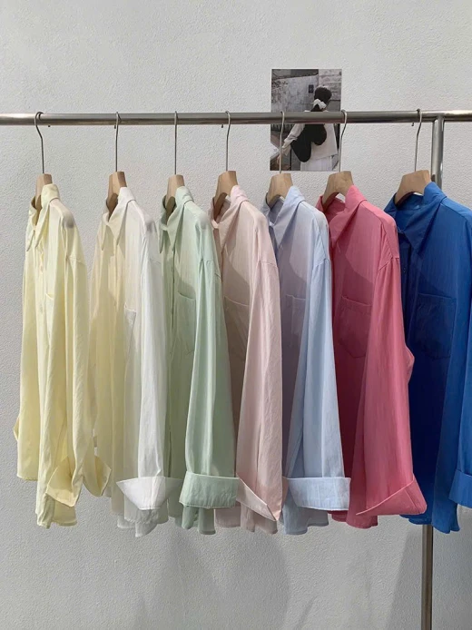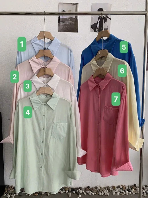 0104gc06 ÁO SƠ MI TRƠN MÀU DÀI TAY em này mix đồ khoác ngoài đi biển hay mix với áo 2 dây bên trong là bao xinh nha 7 màu đánh số ✅Size : free sz < 65kg 🌸 giá 156k 🐬 chốt 1/4