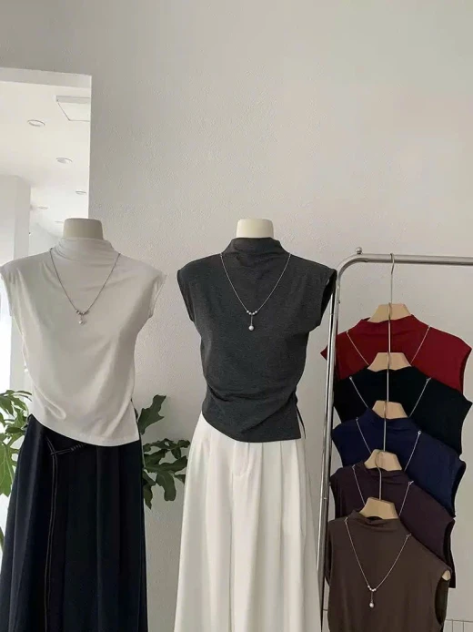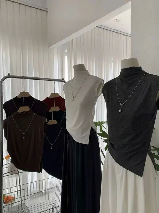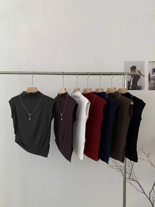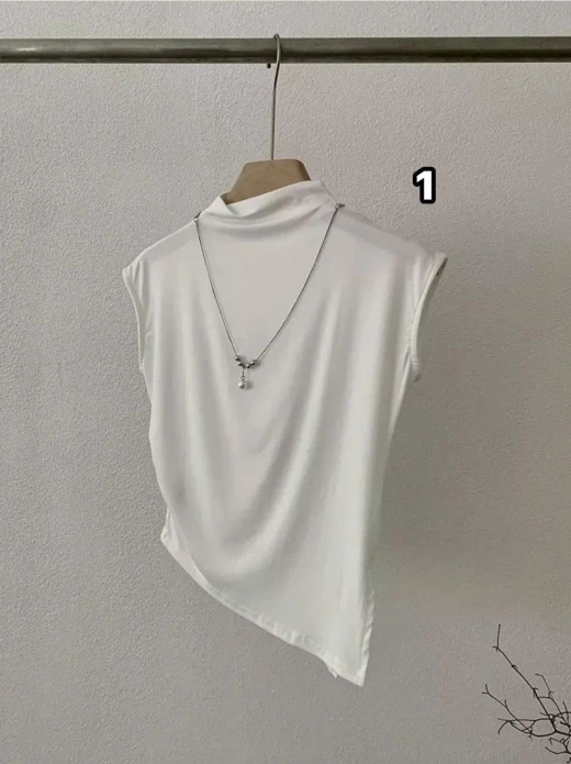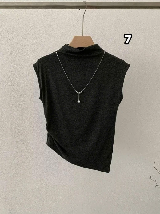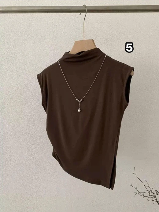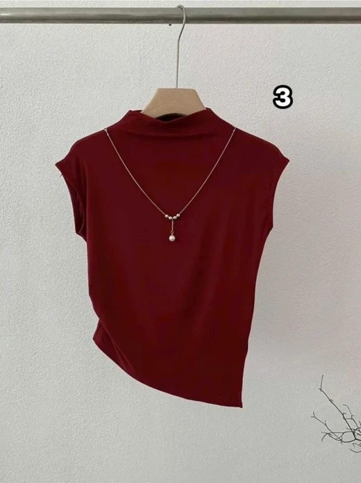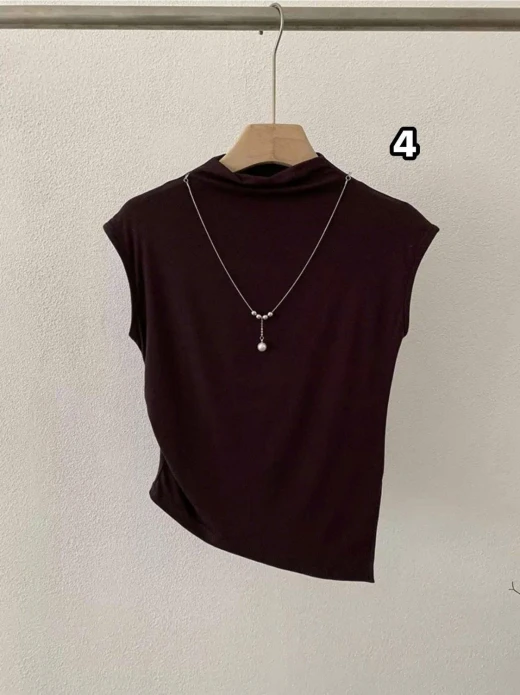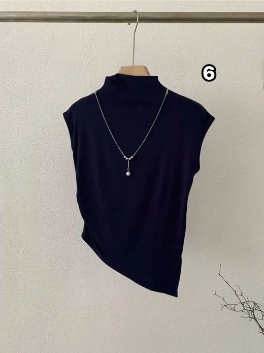0710hc63 ✨ Áo tay hến cổ đứng kèm vòng cổ thời thượng 👉 Thiết kế bất đối xứng phá cách – mặc lên vừa tôn dáng vừa cá tính. 👉 Chất liệu mềm mại, màu trơn dễ phối, hợp đi làm, đi chơi, hẹn hò. 👉 Form ôm nhẹ giúp che khuyết điểm – tôn đường cong. #145k/c , từ 2c #135k/c ✔️Các màu đánh số ✔️Freesz <60kg Màu sắc thực tế của sp có thể đậm hoặc nhạt hơn hình do ánh sáng và hiệu ứng chụp ảnh Giá; 104k chốt 0710