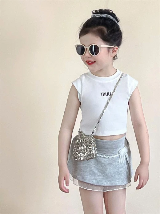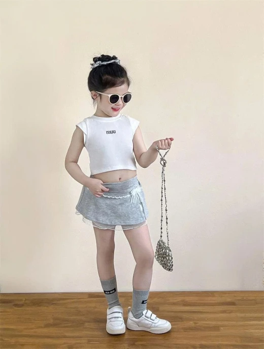 AO THUN CHỮ MIU MIX CHÂN VÁY XÁM