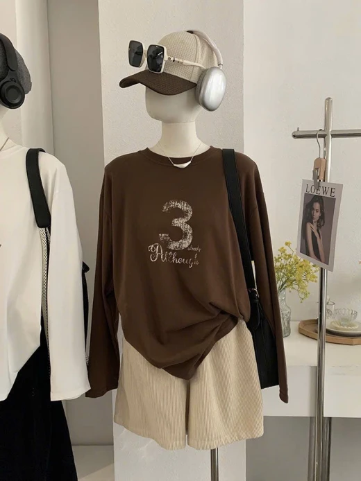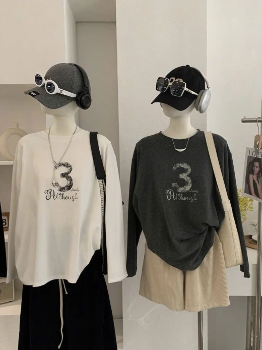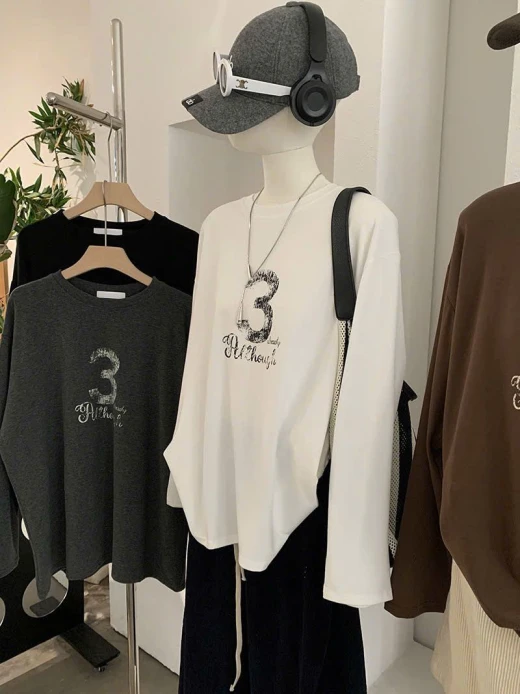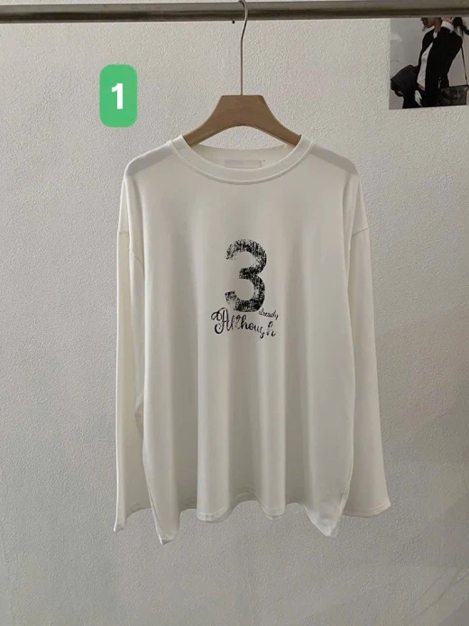 2912hc61 ÁO THUN DÀI TAY SỐ 3 basic mà xinh Phối quần, váy hay short đều chuẩn bài 4 mẫu đánh số ✅freesz dưới 65kg 🌸 giá 168k 🐬 chốt 2912
