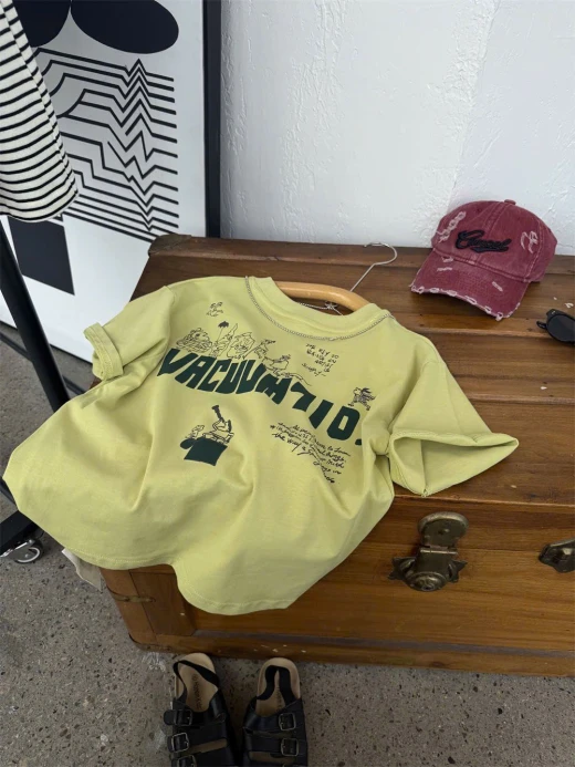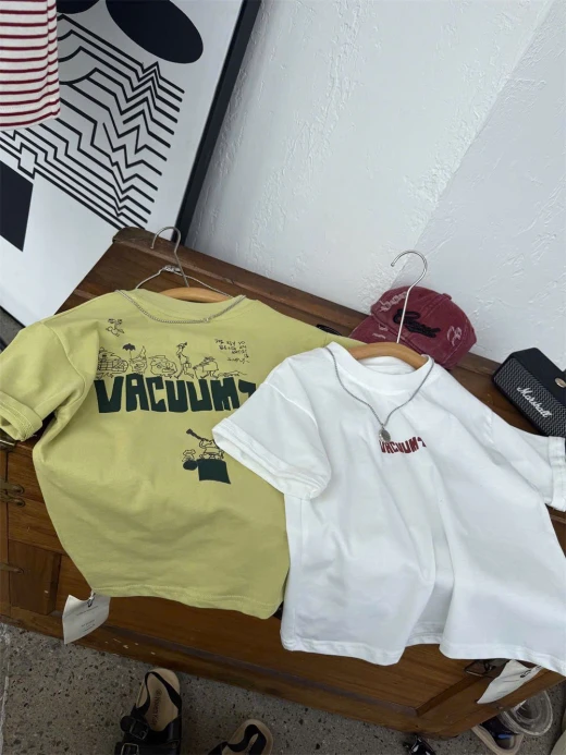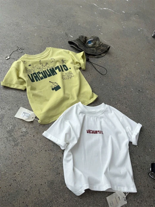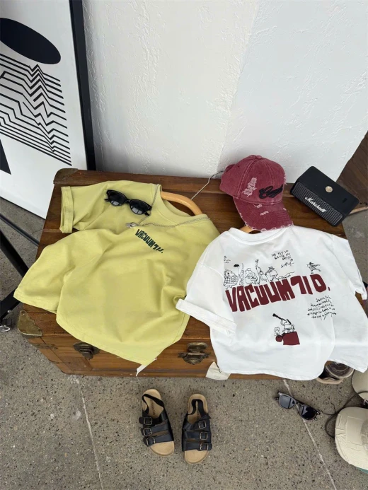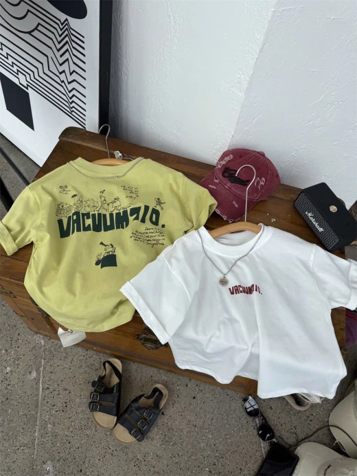 1804gc12 ÁO THUN IN CHỮ LƯNG ✔2 màu : trắng , vàng ✔Size : 100-150 🌸 giá 126k 🐬 chốt 18/4
