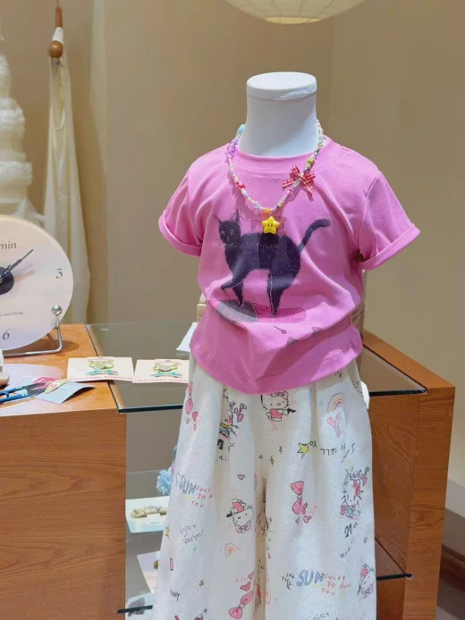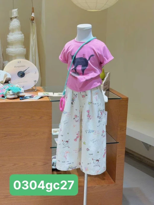 0304gc27 ÁO THUN TAY NGẮN HÌNH MÈO + QUẦN IN HOẠT TIẾT HOẠT HÌNH ✅Bảng size tham khảo: 90: 11-13kg 100: 13-15kg 110: 15-17kg 120: 17-20kg 130: 20-25kg 140: 25-30kg 150: 30-35kg 160: 35-40kg 🌸 giá ÁO: 90-140: 109k 150-160: 117k QUẦN: 90-140: 170k 150-160: 180k 🐬 chốt 3/4