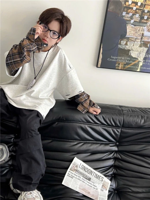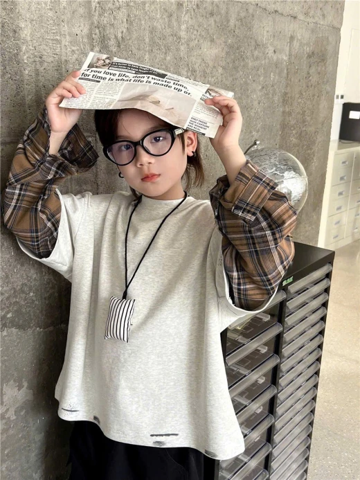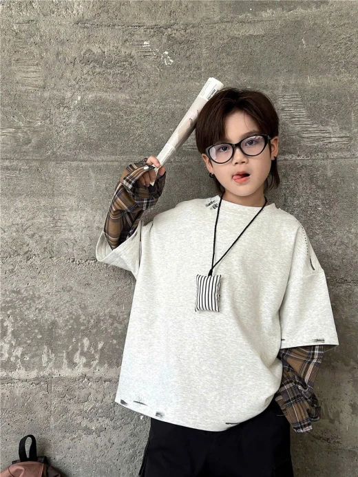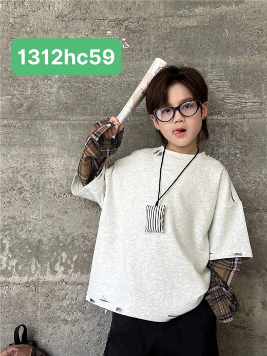 ÁO THUN XÁM GIẢ 2 LỚP CARO NÂU SNIDOLS