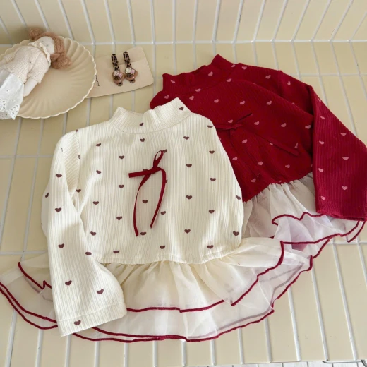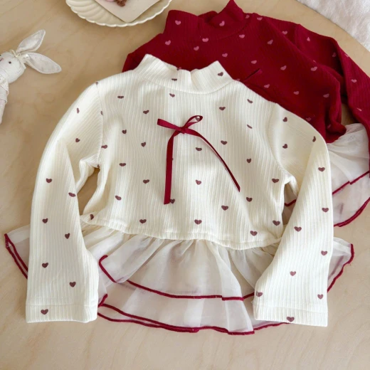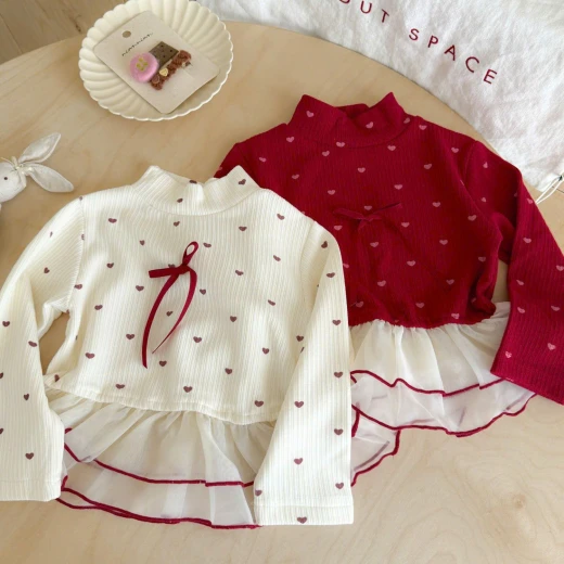 0311hc60 ÁO TRÁI TIM PHỐI VOAN BÈO CHO BÉ Thiết kế tay dài, phối voan bèo nhẹ nhàng – diện đi chơi hay đi học đều đáng yêu hết nấc! 2 màu đỏ , trắng ✅sz 90-140 90: 11-13kg 100: 13-15kg 110: 15-17kg 120: 17-20kg 130: 20-25kg 140: 25-30kg 🌸 giá 121k 🐬 chốt 0311