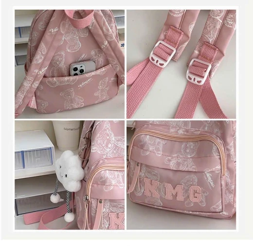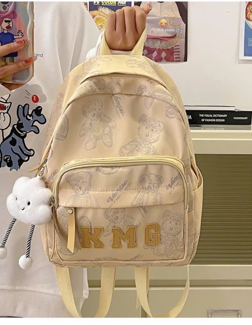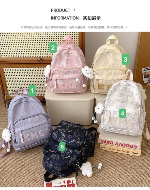 2312hc47 BALO MINI KMG HỌA TIẾT GẤU Balo mini nhẹ, gọn, xinh, phù hợp đi học, đi chơi, dạo phố. Chất liệu vải dày dặn, form đứng, nhiều ngăn tiện dụng 5 màu đánh số 🌸 giá 139k (kèm móc khóa) 🐬 chốt 2312