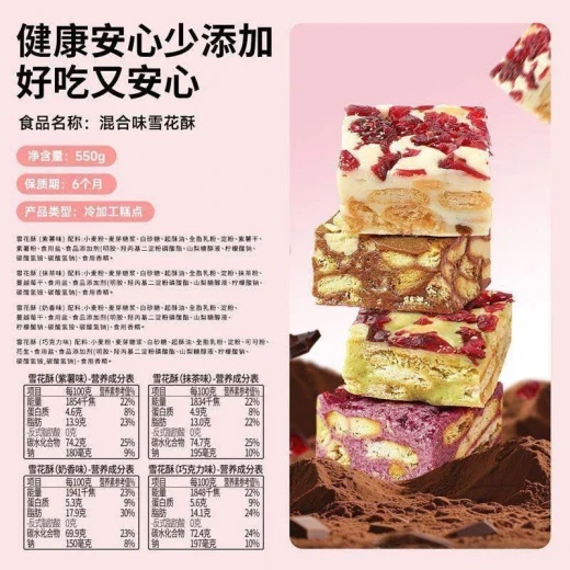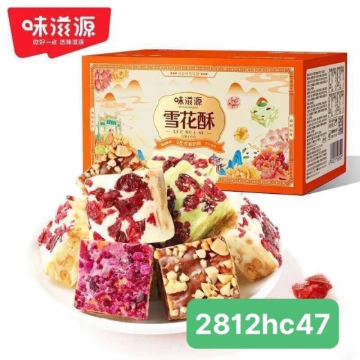 2812hc47 Bánh này e gom 5 năm rôi. Nay hãng đổi bao bì mới Dèo, giòn,xốp, ngọt nhẹ❤️❤️ Bác nào nghiện Nougat thì múc thôi nào. Kẹo mềm, ko bị quá ngọt, nấu cùng với nhiều loại hạt dẻ cười, hạnh nhân, óc chó, điều, mơ nhật, nam việt quất, mứt vỏ cam...., ăn bùi bùi, thơm ngon, ko hề ngấy nhé. Ăn nhâm nhi với tách trà, ngon tuyệt. Ce mua ăn để cảm nhận hương vị kẹo hạnh phúc của nội địa Trung đi … ‼️ ‼️ 🍰🍰 BÁNH NOUGAT DẺO (Bánh bông tuyết ) - CỰC PHẨM LÀNG BÁNH 🍰🍰 ❤️GIÁ: 1️⃣xxk hộp 550g ( ~45 cái) ❌❌Mix 4 vị: SỮA - SOCOLA - MATCHA - KHOAI LANG TÍM ❤Hộp bánh cực dễ thương, gồm khoảnh 42 gói nhỏ rời vừa miếng. Cực tiện lợi làm bữa phụ cho các chị em, các bé ưa ăn vặt. Để nhâm nhi cùng trà Tết cũng rất sang luôn. ❤Từng miếng bánh phủ kín lớp vỏ vị sữa chua dẻo dai. ❤Nhân bánh quy mặn vẫn giòn tan, thơm ngậy. ❤Lại thêm chút hương vị ngọt dịu chua dịu của cranberry... Miếng bánh như tan trong khoang miệng, lại muốn ăn miếng nữa ngay luôn 🤤🤤🤤 🥰 Bản thân m đã ăn cảm nhận đầu tiên là nó k ngấy như bánh sữa chua,k ngọt ngắt như bánh sôcla. Bánh ngọt thanh giòn giòn càng ăn càng nghiền 😍😍 Trọng lượng 550g Hạn sử dụng: 06 tháng kể từ ngày sản xuất in trên bao bì Hàng oder trả tr tết âmm giá 70k/ set mix vị chốt 2812