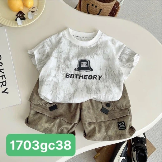 1703gc38 BỘ ÁO CỘC QUẦN SHORT BT Siêu hot bộ bé trai chất lừ luôn. Basic dễ mặc, lịch sự mặc đi đâu cũng hợp luôn sz 80-120 🌸 giá 108k 🐬 chốt 17/3