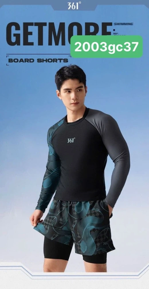 2003gc37 ‼ ‼ ‼ BỘ BƠI NAM DÀI TAY 361 Mẫu bơi dài tay mới toanh của hãng lên kệ sa le rồi đây ạ. Đẹp xịn miễn chê, các anh kỹ tính mặc đồ bơi hãng này yên tâm chất đẹp. Mặc xuống nước siêu thích. ✅ 2 màu đánh số. ✅ Size: M - 4XL. M (47-55kg) L (55-65kg) XL(65-75kg) 2XL(75-85kg) 3XL (85-95kg) 4XL (95-105kg) 🌸 giá 353k 🐬 chốt 20/3