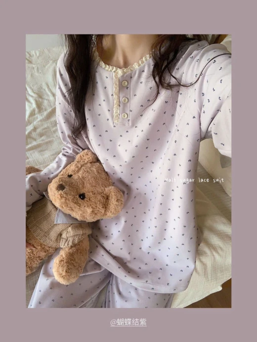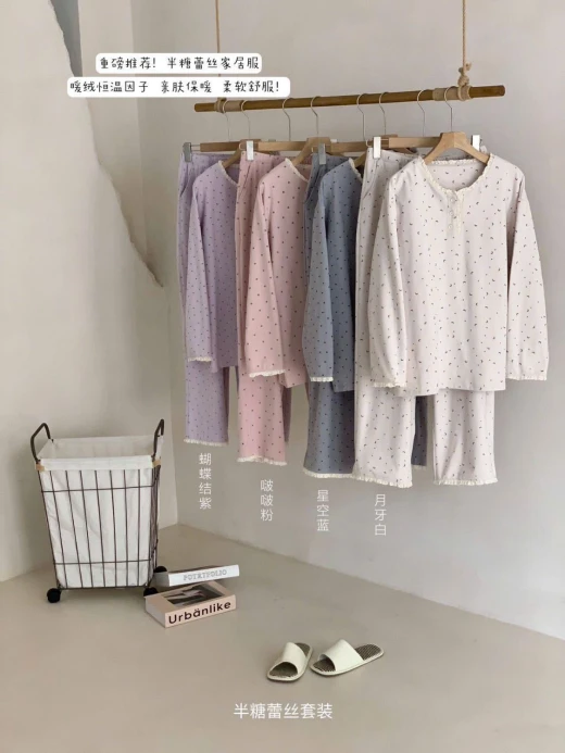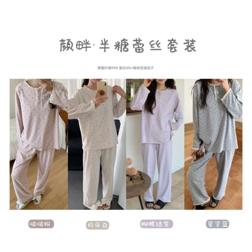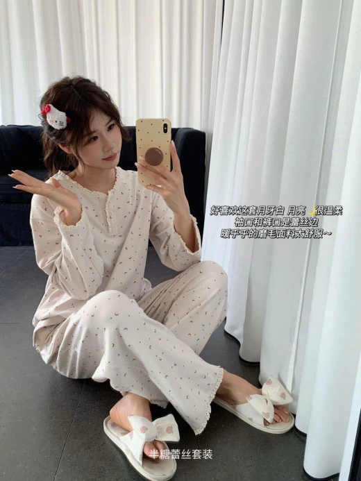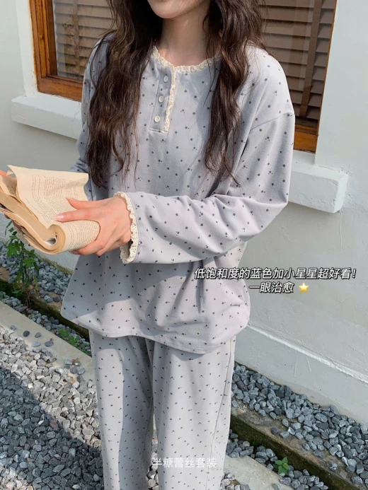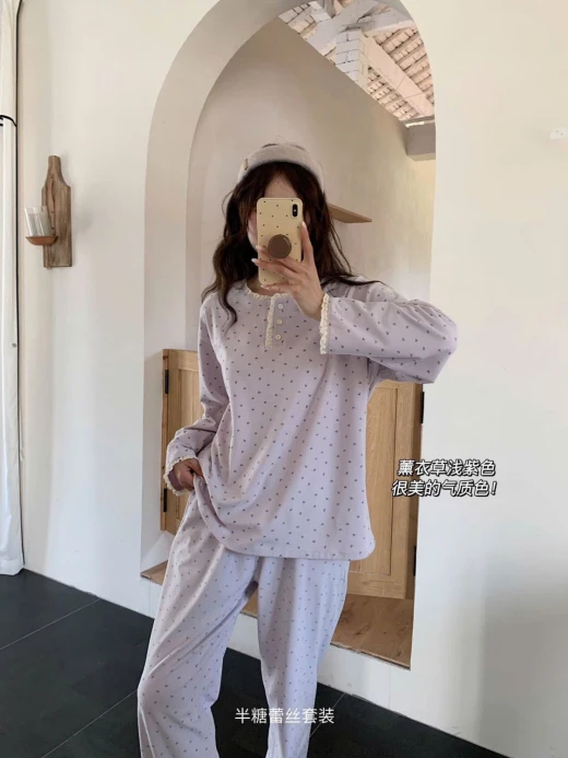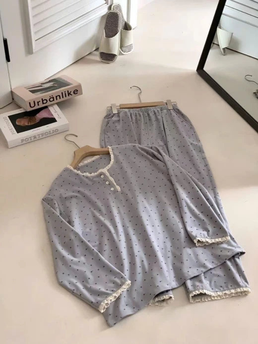 BỘ COTTON MẶC NHÀ CHẤM BI VIỀN REN
