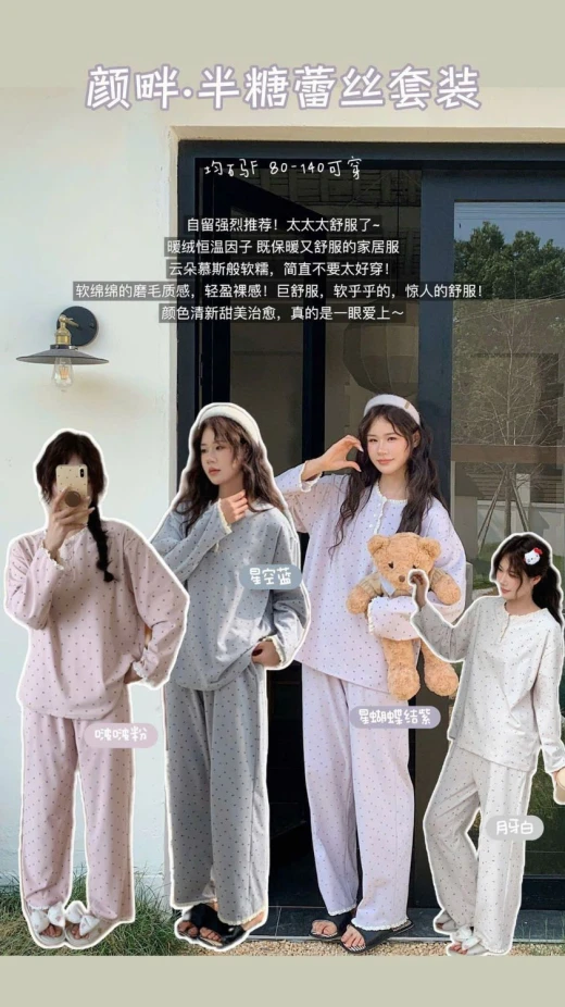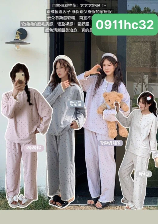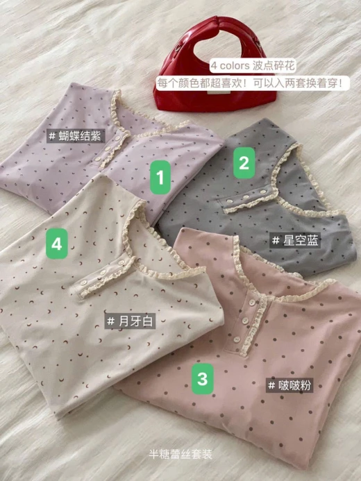 0911hc32 BỘ COTTON MẶC NHÀ CHẤM BI VIỀN REN ✔4 màu : đánh số ✔Free size <70kg 🌸 giá 253k 🐬 chốt 9/11