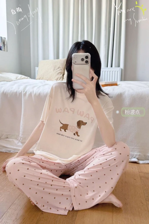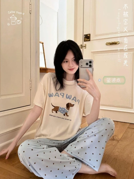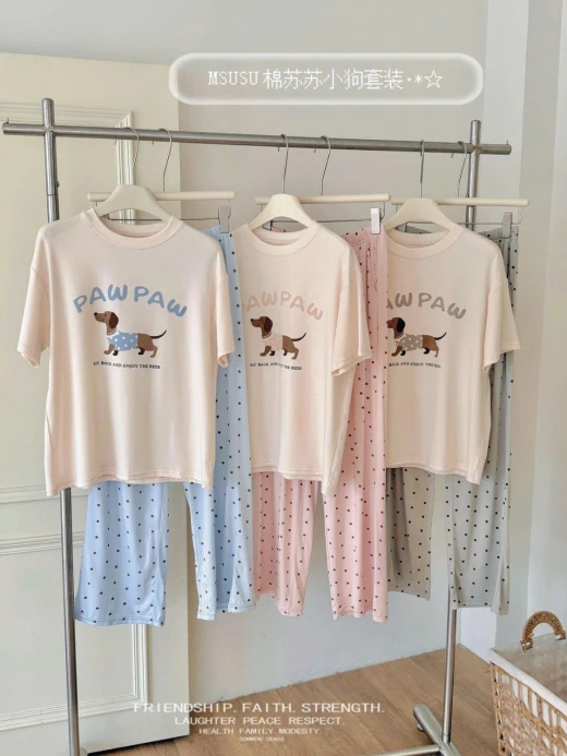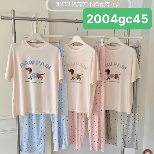 2004gc45 E gom chính hãng MSUSU Z103 giá #299K /set Bộ đồ ngủ Msusu chất cotton dáng rộng, co dãn thoải mái Chị em diện chỉ có mê 3 màu theo màu quần: Chấm bi hồng, chấm bi xám, chấm bi xanh ✔️ Free size dưới 68kg ☘️Giá: 259k ✅ Chốt 2004