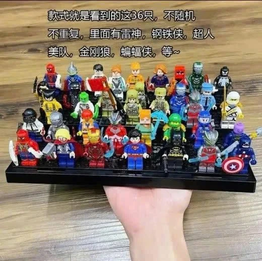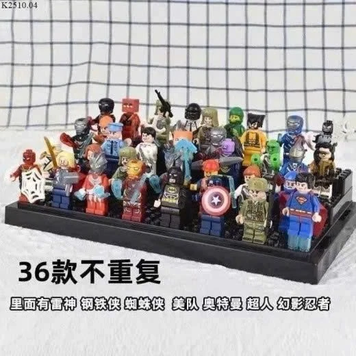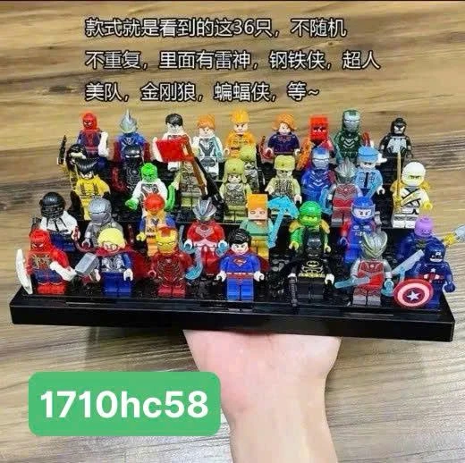 1710hc58 ‼️ ‼️ BỘ LEGO 36 NHÂN VẬT ĐỦ BỘ 😢 Bộ này vào hãng bn xèng mn ơi! Xịn xò lắm luôn bộ 36 chi tiết kèm đế như hình nhé. ❌ Chơi xong làm đồ decor luôn. Cam nhà e nó mê cực ☘️☘️ SET NHÂN VẬT ĐỦ BỘ luôn nhaaaa không phải hàng lộn xộn bán cân đâu, nguyên liệu xịn xò nặng tay. Nhỏ nhỏ xinh xinh đứa trẻ nào cũng mê. Suốt ngày siêu anh hùng 🤣 chốt 17/10 giá 99k/1b