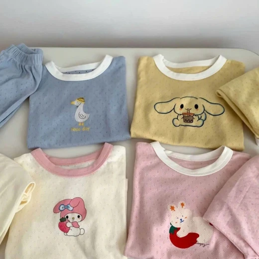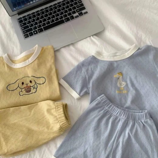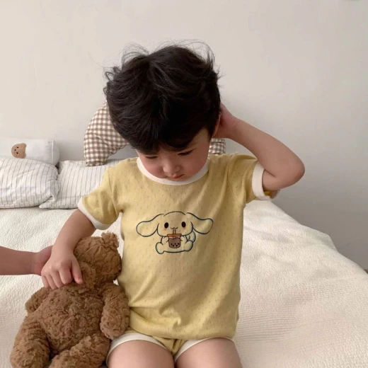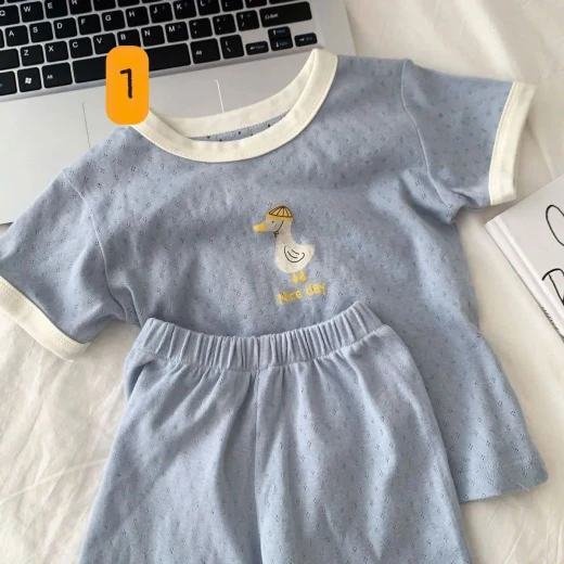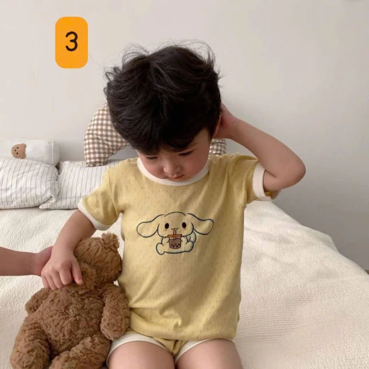 0503gc26 BỘ MẶC NHÀ HỌA TIẾT DỄ THƯƠNG BTBG Bộ đồ mặc nhà mùa hè mới, kiểu dáng mới, chất liệu cotton thoáng khí, tay ngắn, thoáng mát ⭐ 5 màu dễ thương bé trai và bé gái mặc đều okela 💙 Sz: 90-140 Giá; 99k Chốt 5/3